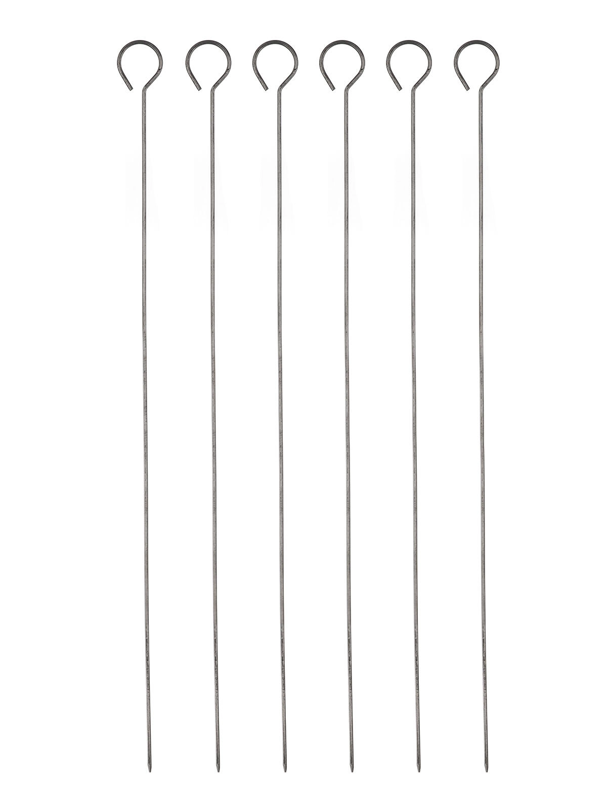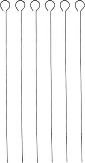 Praktische set van 6 grillspiezen met een lengte van 31,5 cm en een comfortabel oog voor eenvoudig draaien. De duurzame metalen uitvoering is ideaal voor spiesen van vlees en groenten en werkt perfect op de grill, in de pan en in de oven.