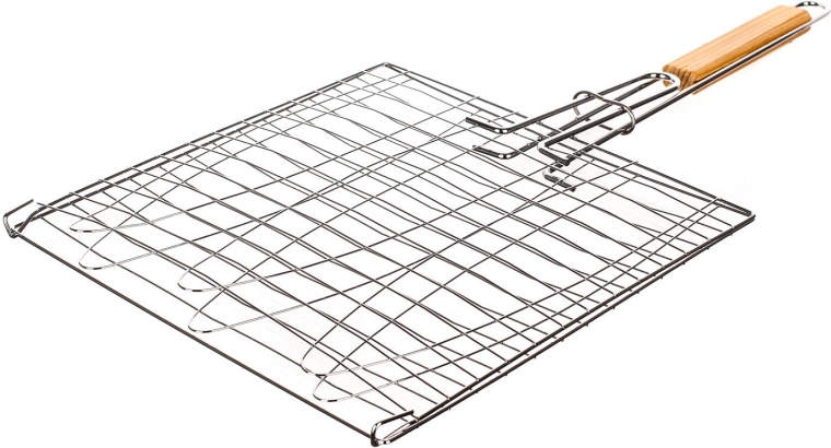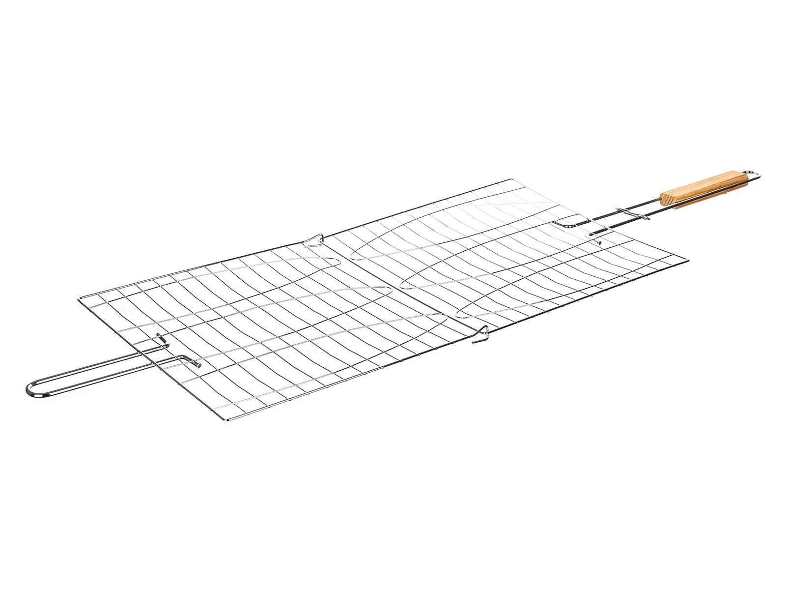 Praktische grillmand voor vis waarmee je in één keer tot 3 vissen eenvoudig kunt bereiden zonder dat ze uit elkaar vallen. Dankzij de verchroomde staalconstructie en het houten handvat is de bediening veilig en comfortabel en blijft het voedsel niet kleven. Ideaal voor BBQ, tuinfeestjes en weekendgrillen.