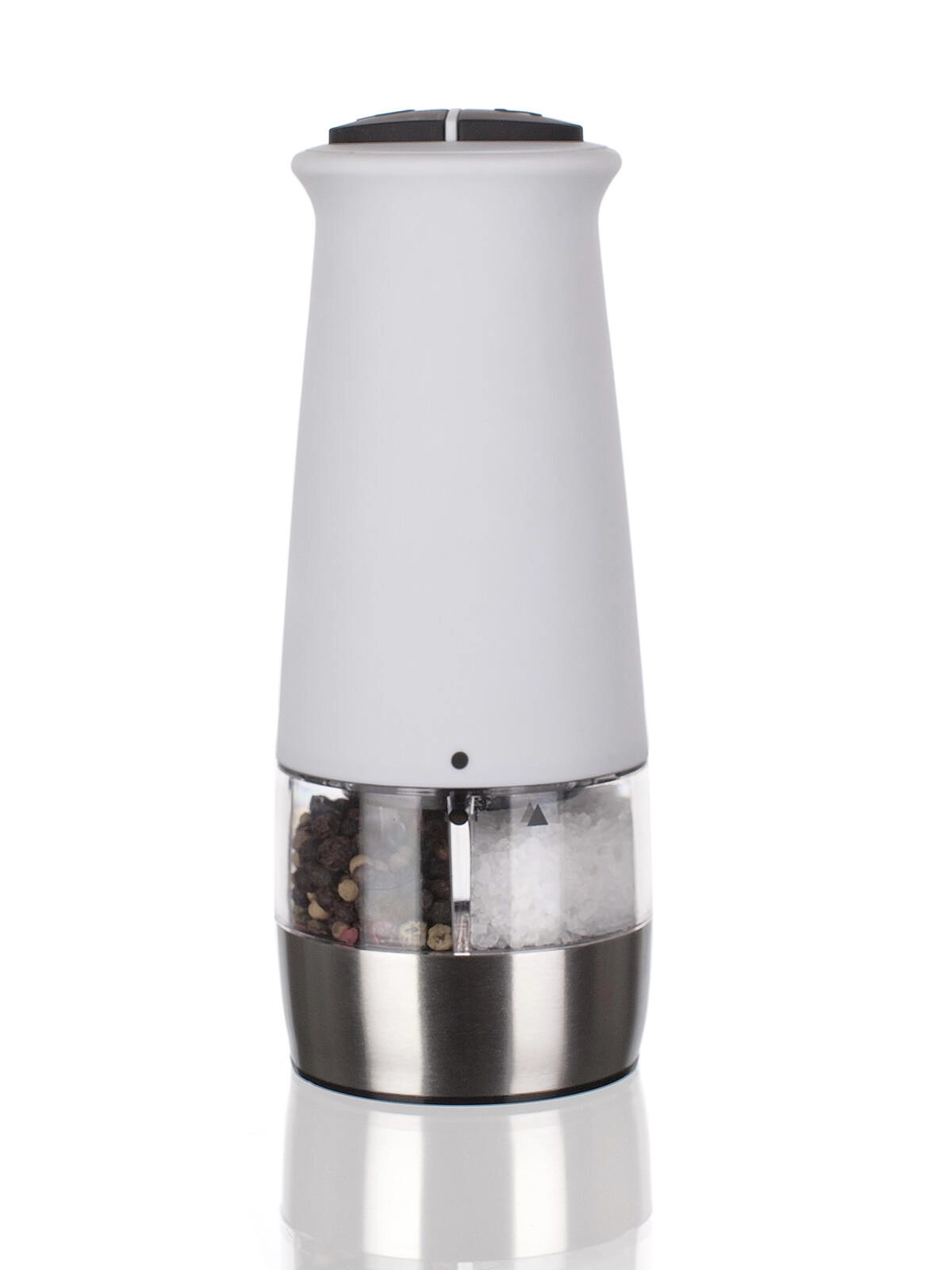 Praktische elektrische 2-in-1 molen voor zout en peper in elegante witte kleur bespaart tijd en moeite. Dankzij het keramische maalwerk en de instelbare maalgraad pas je de kruiding eenvoudig aan naar smaak. Eenhandige bediening en een transparant venster voor voorraadcontrole maken het een ideale aanvulling voor elke keuken.