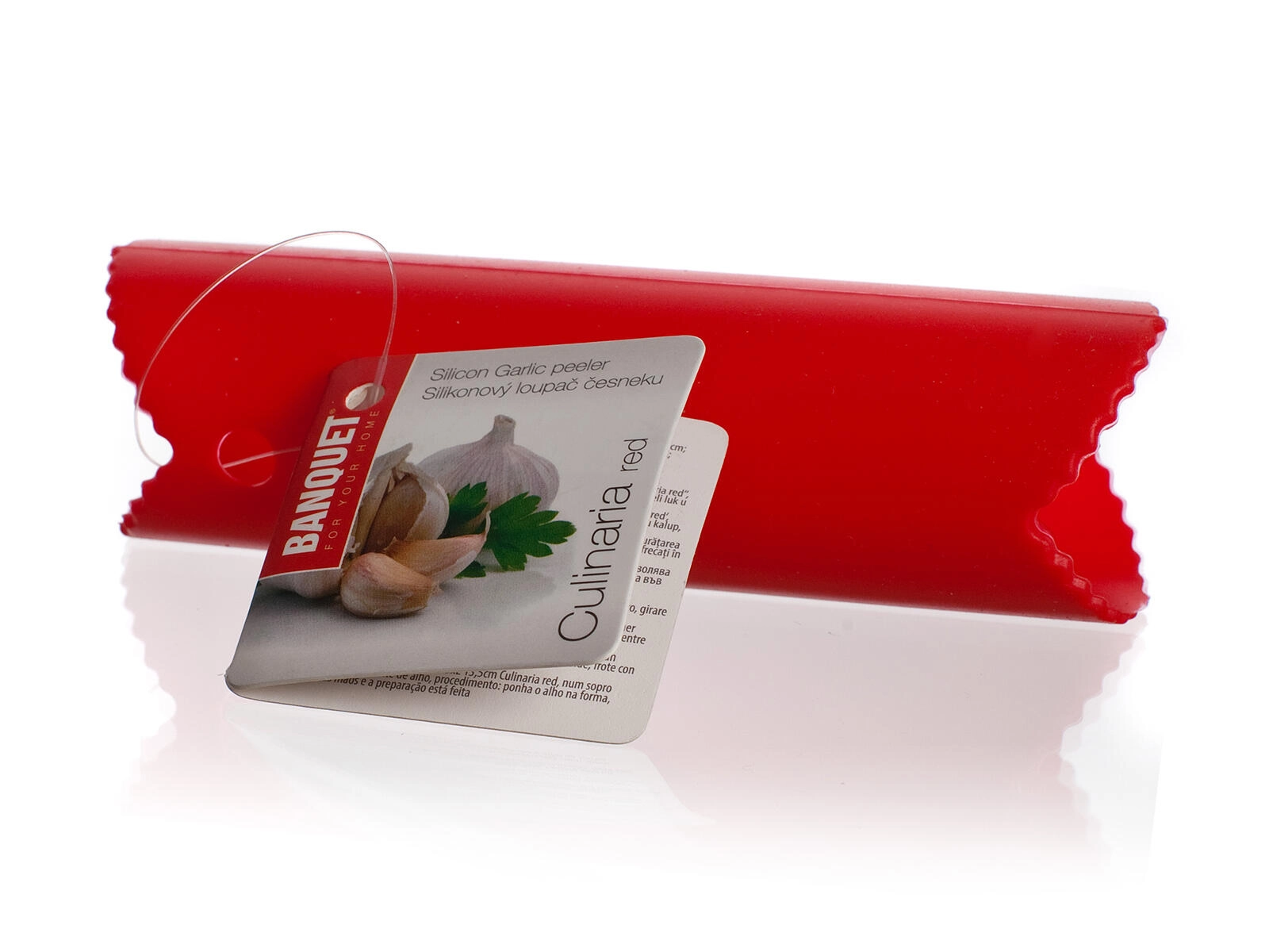 Praktische siliconen knoflookpeller CULINARIA rood met een lengte van 13,5 cm en een diameter van 3,5 cm helpt je knoflook in enkele seconden te pellen. Een lichte rolling is voldoende en de teentjes zijn klaar voor verder gebruik – snel, schoon en zonder geur aan je vingers.