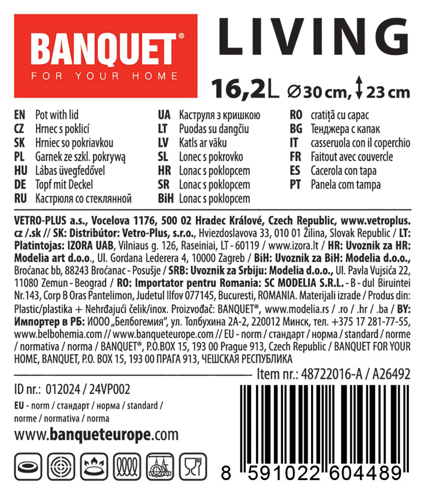 Grote RVS pan LIVING met een inhoud van 16,2 l en een diameter van 30 cm, ideaal voor het koken van soepen, bouillons en pasta. Voorzien van een hoogwaardige roestvrijstalen uitvoering, een glazen deksel met RVS knop en stevige handgrepen. Het elegante glanzende oppervlak wordt aangevuld met drie matte ringen en de pan is geschikt voor alle soorten kookplaten, inclusief inductie.