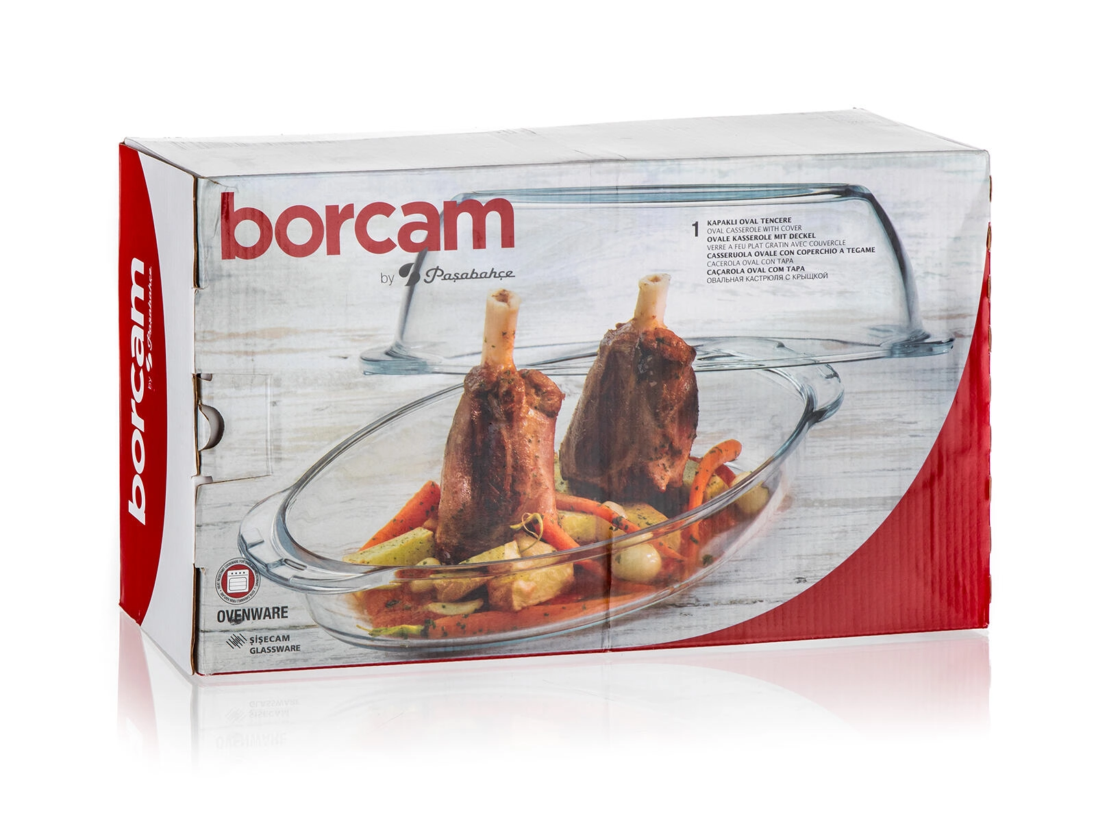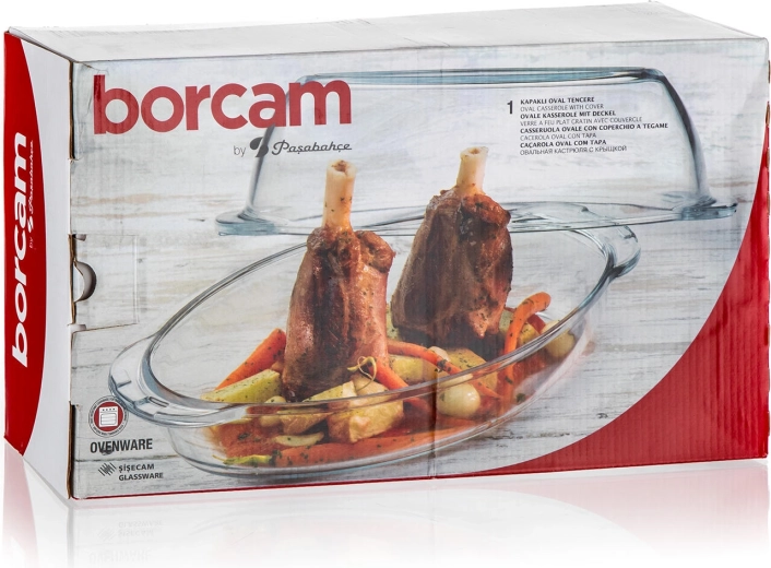 De glazen ovale braadslede met deksel biedt een royale inhoud van 4,6 l (schaal 2,8 l + deksel 1,8 l), zodat u eenvoudig een familielunch of weekendlekkernijen bereidt. Het hittebestendige borosilicaatglas blinkt uit door hoge mechanische en thermische bestendigheid, is smaak- en geurneutraal en verdeelt warmte uitstekend voor een gelijkmatige garing.