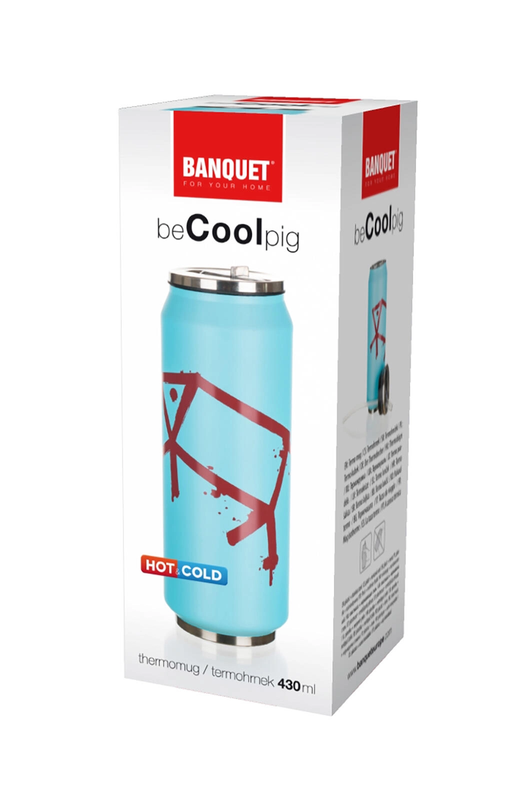 Ontdek de lichte en duurzame BE COOL PIG-thermobeker met een inhoud van 430 ml, die modern blikdesign combineert met krachtige thermische isolatie. Het dubbelwandige roestvrijstalen lichaam houdt dranken langer warm of koud, terwijl de schroefdeksel met afdichting het risico op lekken minimaliseert.