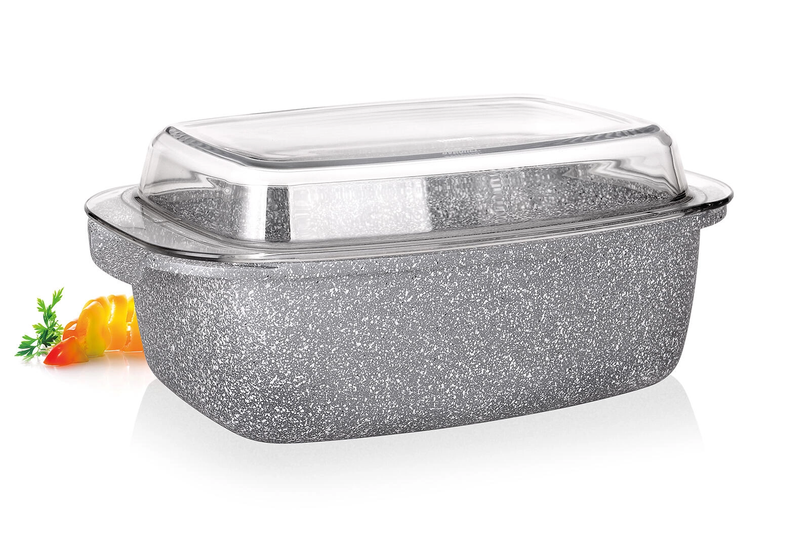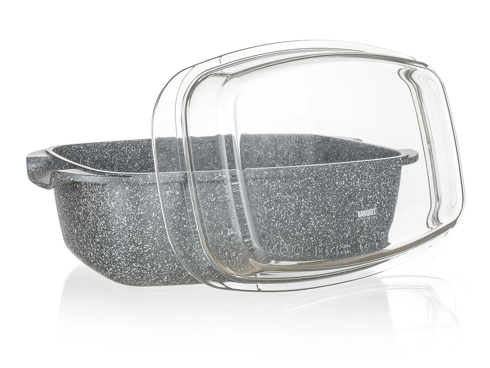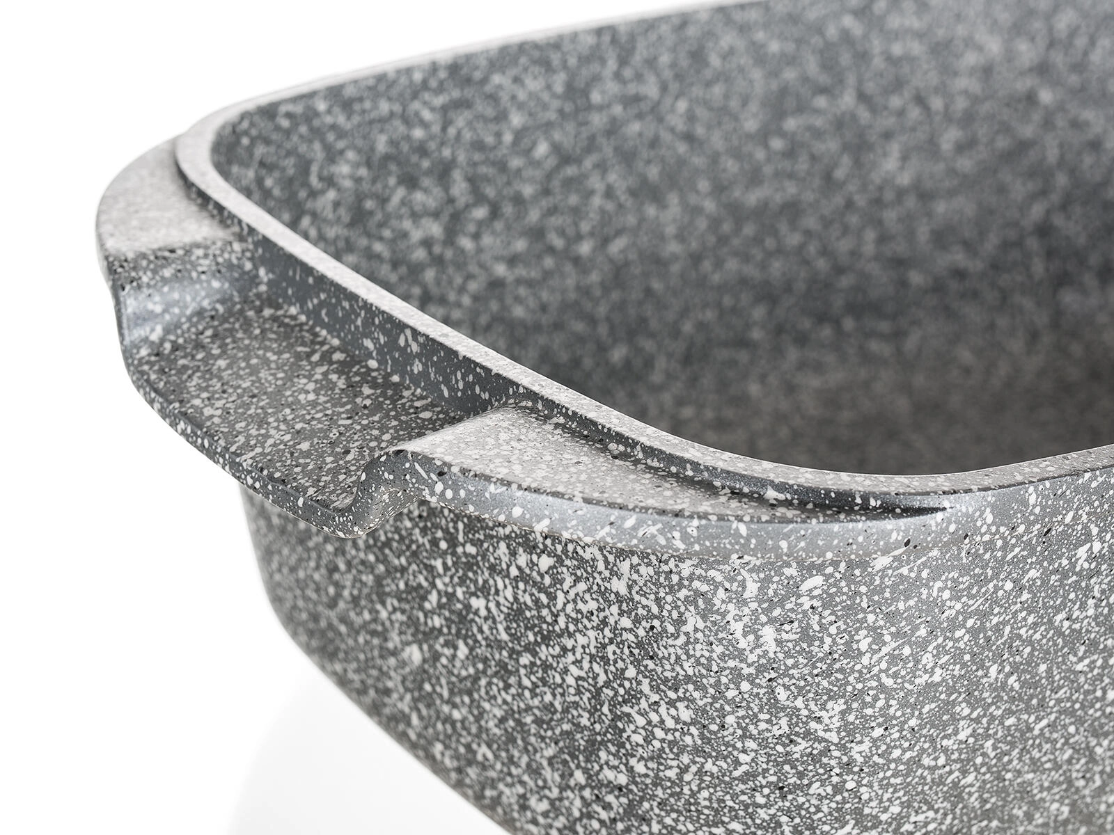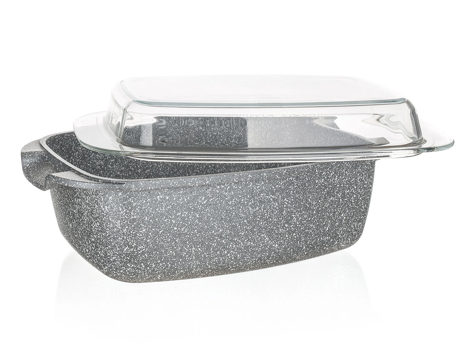 Robuuste braadpan met een inhoud van 5,7 l en granietlook, ideaal voor het braden van vlees, groenten en ovengerechten. Dankzij de antiaanbaklaag met 2 lagen branden gerechten niet aan en is de vorm gemakkelijk te onderhouden. Het glazen deksel maakt visuele controle mogelijk en helpt warmte en sappen binnen te houden.