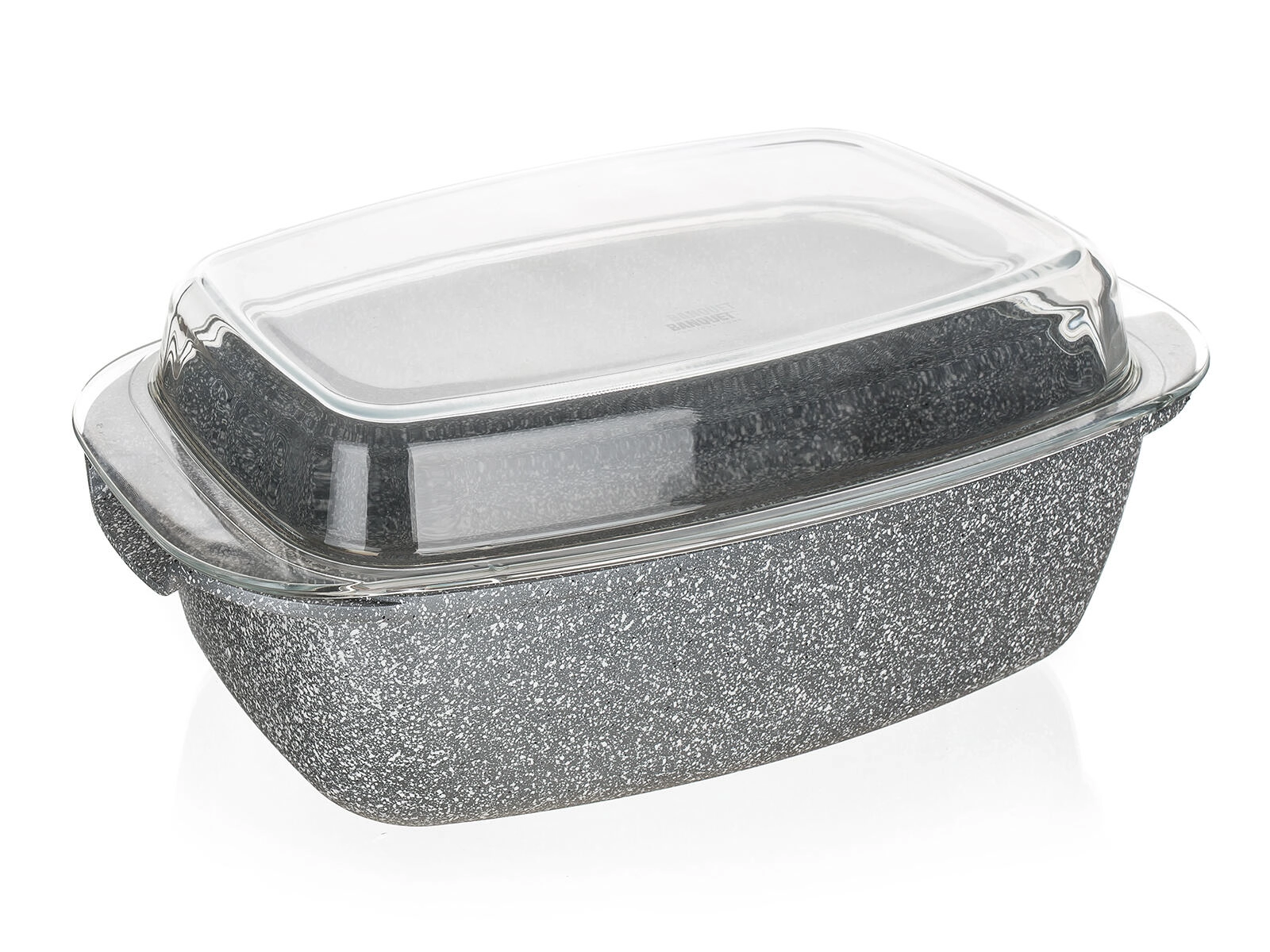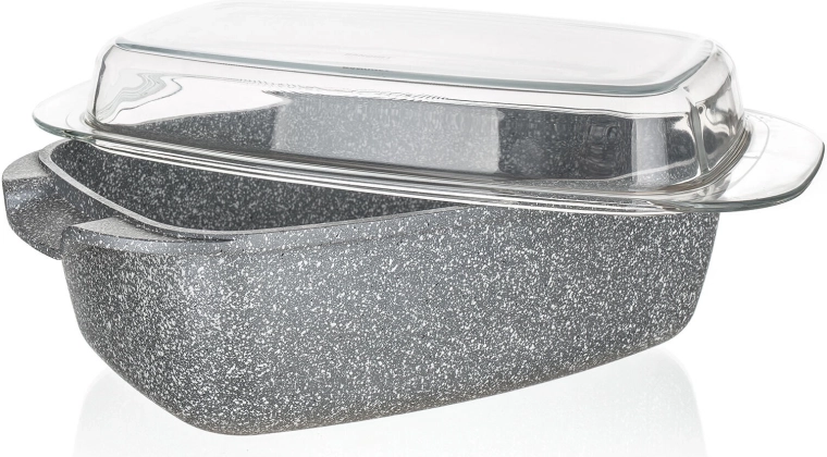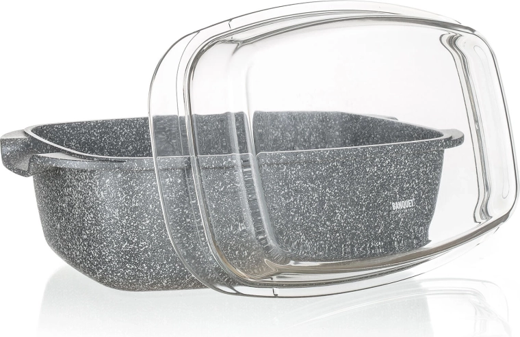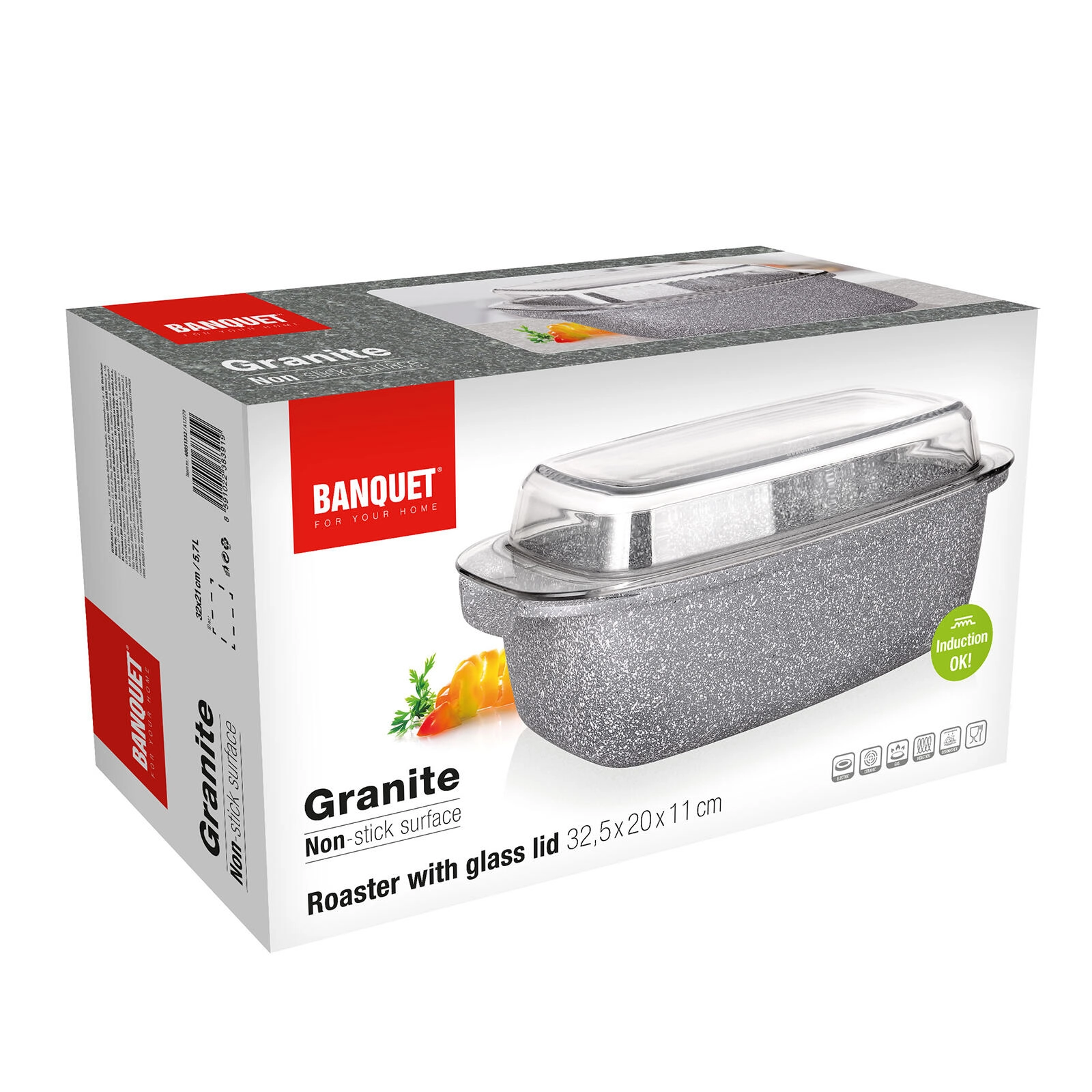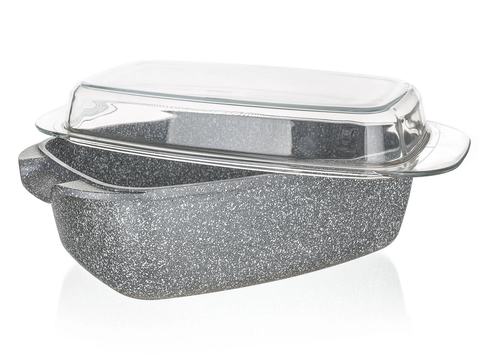Robuuste braadpan met een inhoud van 5,7 l en granietlook, ideaal voor het braden van vlees, groenten en ovengerechten. Dankzij de antiaanbaklaag met 2 lagen branden gerechten niet aan en is de vorm gemakkelijk te onderhouden. Het glazen deksel maakt visuele controle mogelijk en helpt warmte en sappen binnen te houden.