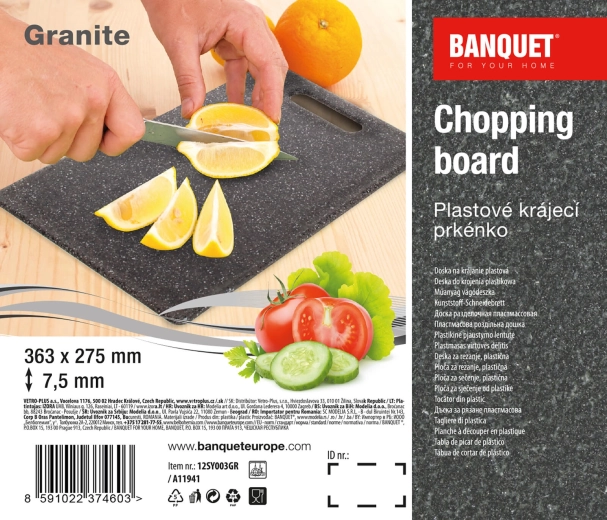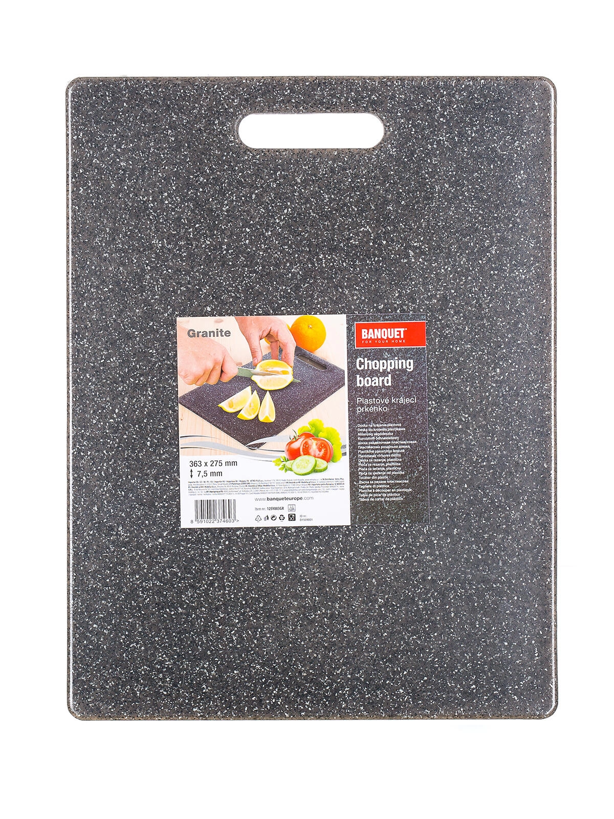 Op zoek naar een betrouwbare snijplank voor in de keuken? De kunststof snijplank GRANITE is gemaakt van hoogwaardige polypropyleen, wat zorgt voor een lange levensduur, eenvoudig onderhoud en hygiënisch gebruik. Ze is vriendelijk voor de snede en ideaal voor dagelijks snijden van vlees, groenten en brood.
