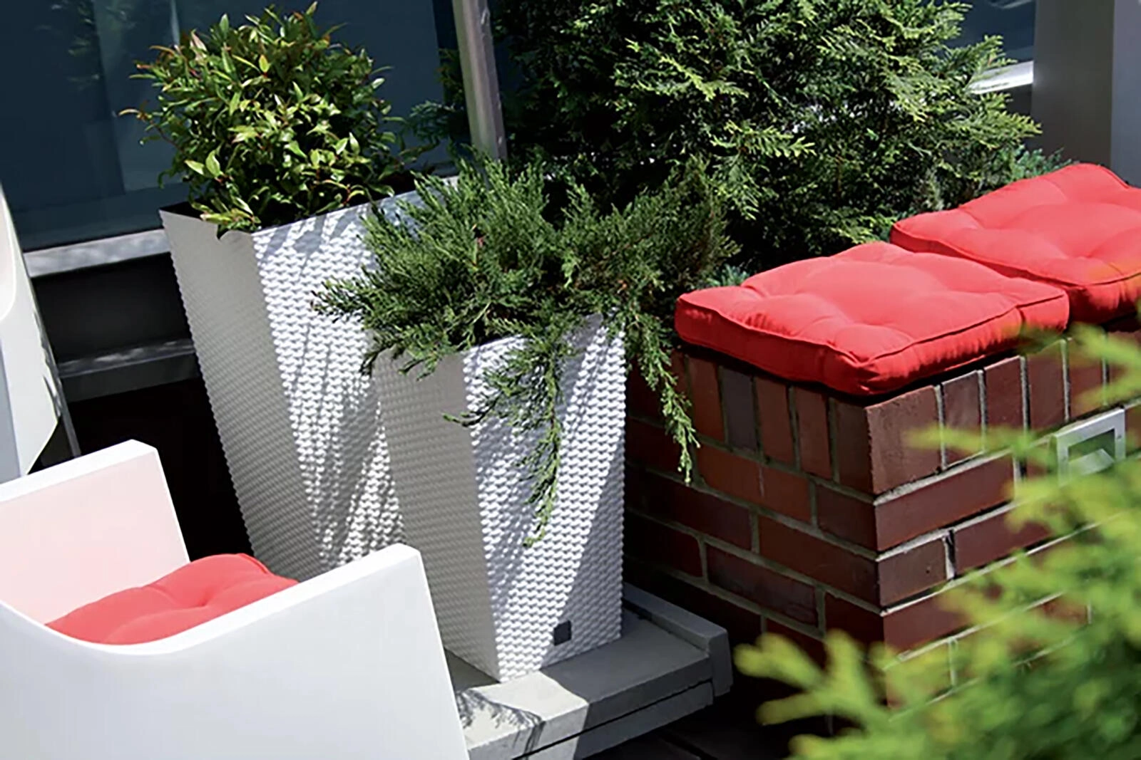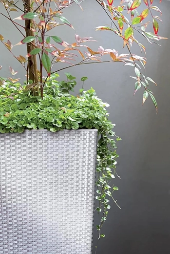 De plantenbak Rato Square in het wit combineert een stijlvolle ratanuitstraling met de praktische eigenschappen van kunststof. Dankzij de slanke vorm past hij perfect in een hoek van de kamer, op het terras en balkon en benadrukt hij de schoonheid van je planten.