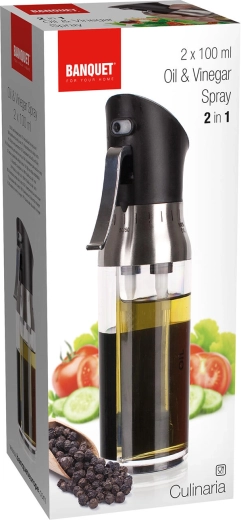 Ontdek de slimme oplossing voor op smaak brengen: de CULINARIA olie- en azijnsprayer met twee afzonderlijke kamers (2×100 ml) in één fles. Hiermee kunt u snel en hygiënisch olie en azijn afzonderlijk vernevelen of doseren, met volledige controle. De transparante behuizing maakt het eenvoudig om hoeveelheden en verhoudingen te volgen, terwijl de rvs ring een elegante uitstraling geeft.
