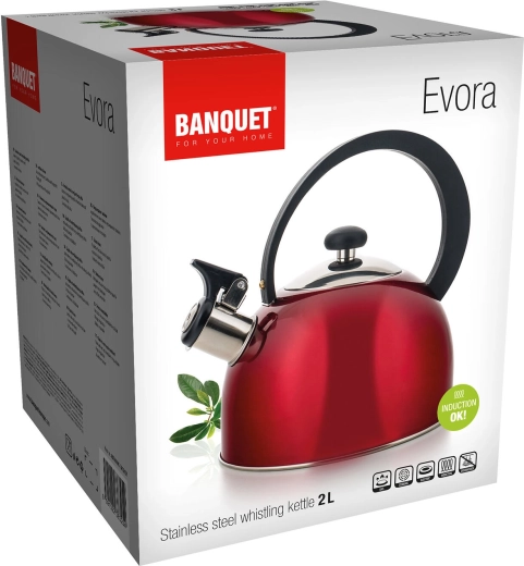 De elegante roestvrijstalen waterketel EVORA met een inhoud van 2 l is ideaal voor dagelijks water koken. Hij biedt een fluit voor kooksignaal, compatibiliteit met alle typen kookplaten inclusief inductie en een veilig bakelieten handvat voor comfortabel schenken.