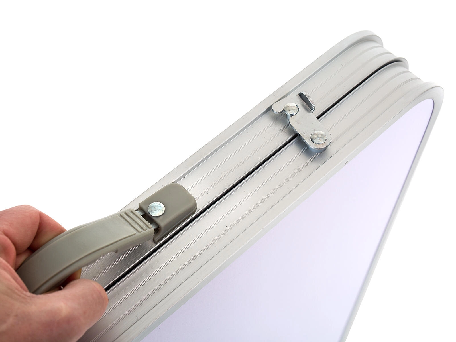 De hele set vouw je gemakkelijk op tot een platte koffer met geïntegreerd handvat voor eenvoudig dragen en ruimtebesparende opslag in de auto of thuis.