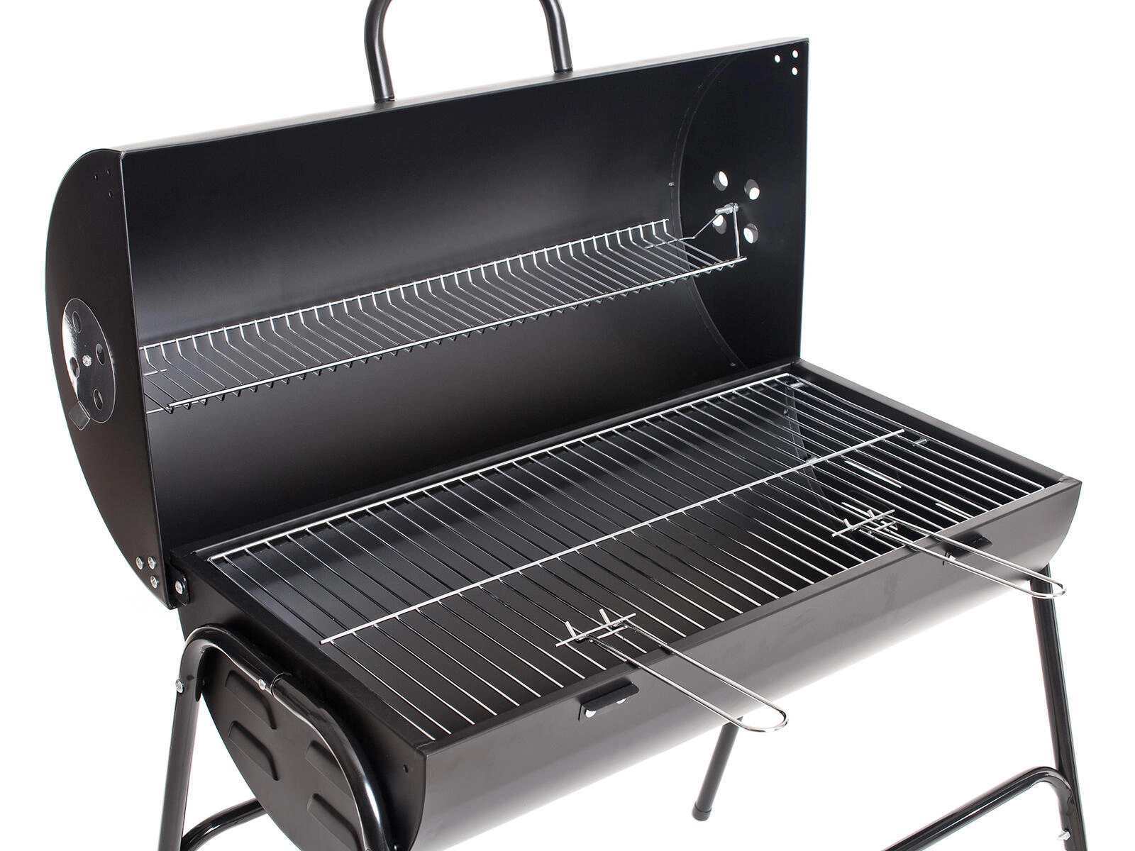 De robuuste Rancher houtskoolbarbecue voor in de tuin is ideaal voor buiten koken in de tuin, op het zomerhuisje of tijdens het kamperen. Hij biedt een ruime grilloppervlakte met twee roosters – een hoofdrooster en een bovenste verwarmingsrek – van verchroomd staal voor gelijkmatige garing en het vasthouden van warmte. Dankzij de eenvoudige maar stevige constructie is de barbecue stabiel, gemakkelijk te bedienen en maakt hij precieze luchtregeling mogelijk via de zijventilatie. Een ingebouwde thermometer in het deksel helpt de juiste temperatuur te bewaken voor grillen en licht roken.