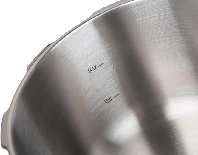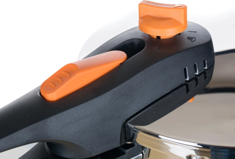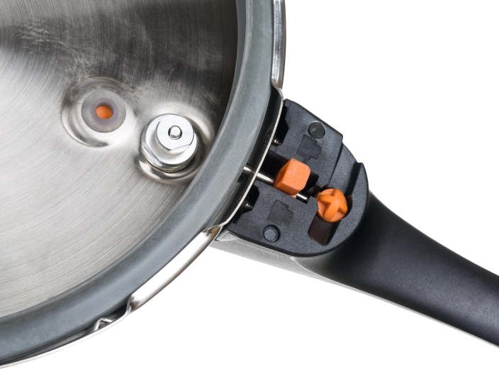 Voor veilig gebruik is het deksel uitgerust met een werkventiel, een beveiliging tegen openen onder druk en een siliconen afdichting voor perfecte afsluiting. De keuze uit twee werkdrukken (0,6 of 0,9 bar) stelt je in staat het koken aan te passen aan verschillende ingrediënten – van delicate groenten tot steviger vlees.