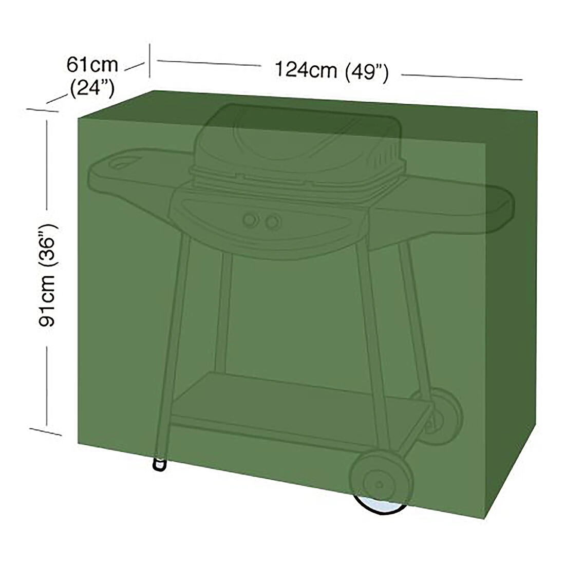 Dankzij de compacte afmetingen van 124 × 61 × 91 cm sluit het zeil goed aan en minimaliseert het het binnendringen van vuil. De groene kleur past natuurlijk in de tuin of op het terras.