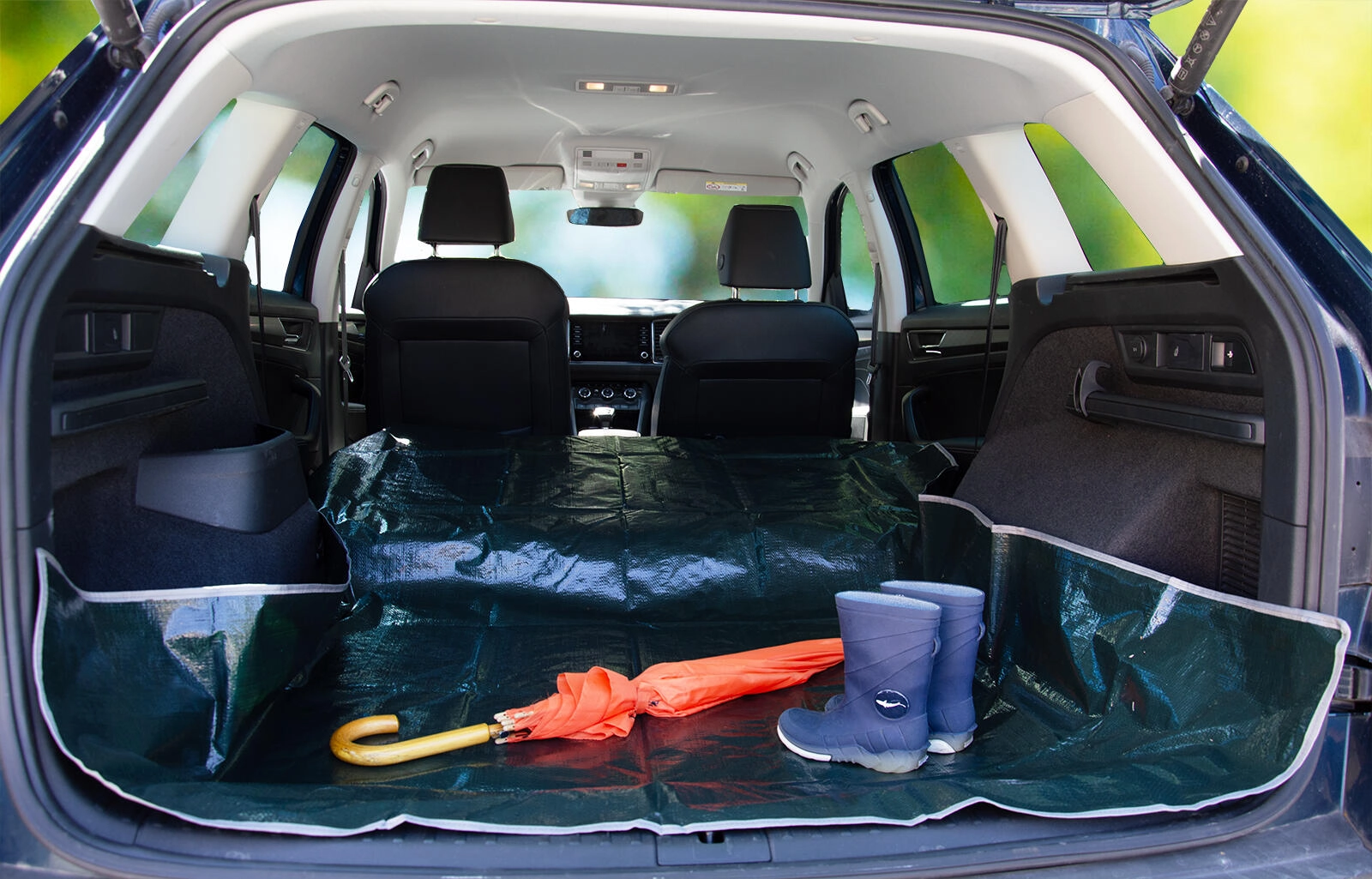 Dankzij de universele afmetingen van 140 × 200 cm past het in de meeste personenauto’s en stationwagens. Het zeil is eenvoudig uit te vouwen, op te vouwen en schoon te maken – afnemen met een vochtige doek of afspoelen is voldoende.