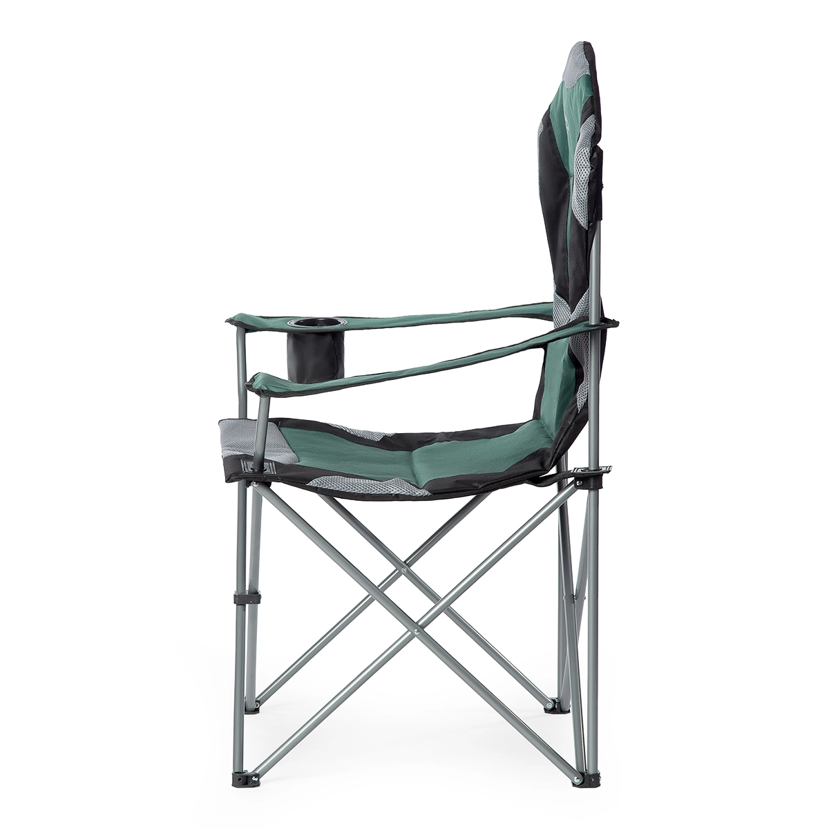 De stoel vouw je eenvoudig op tot een compact formaat en berg je op in de transporttas. De geïntegreerde houder houdt een fles of beker altijd binnen handbereik.