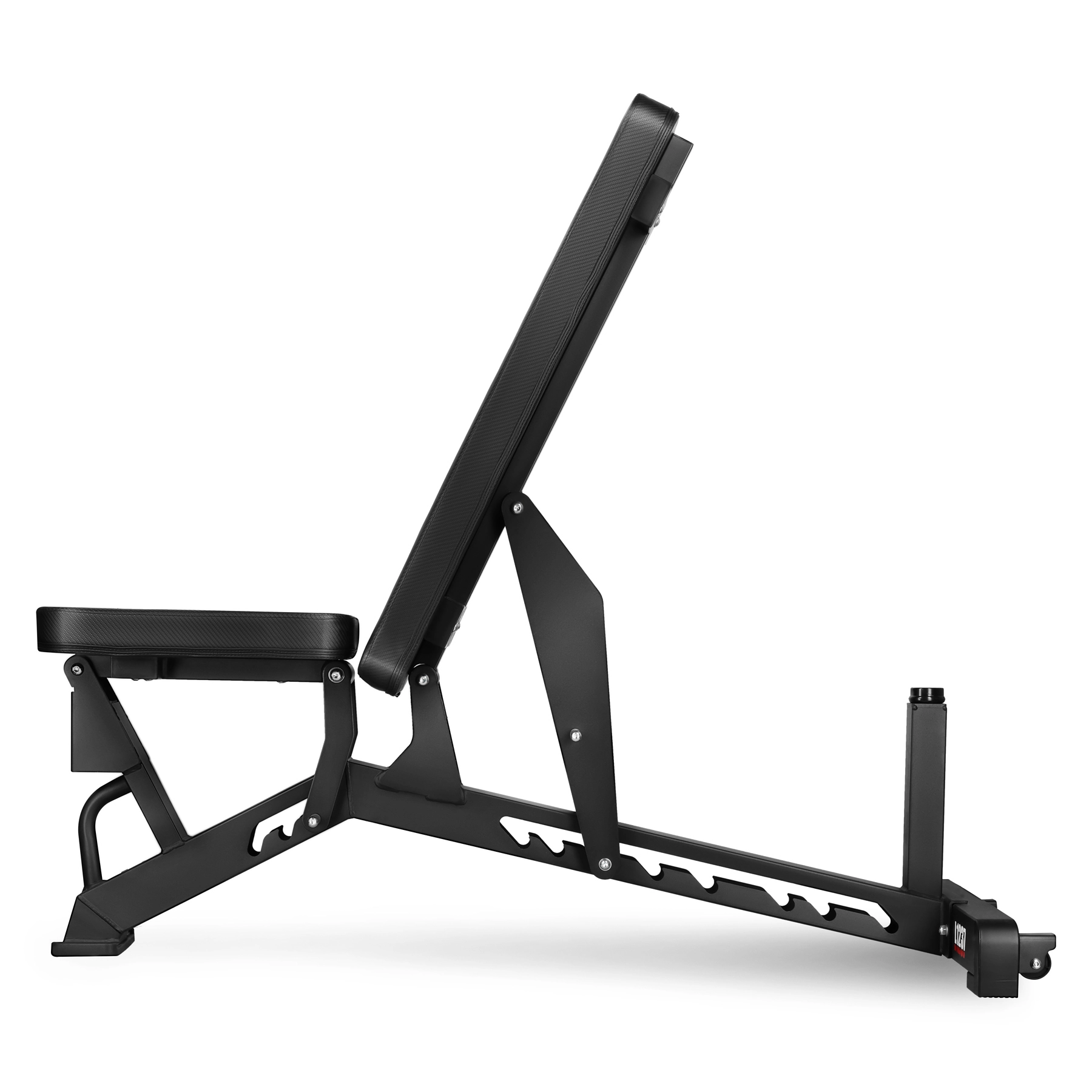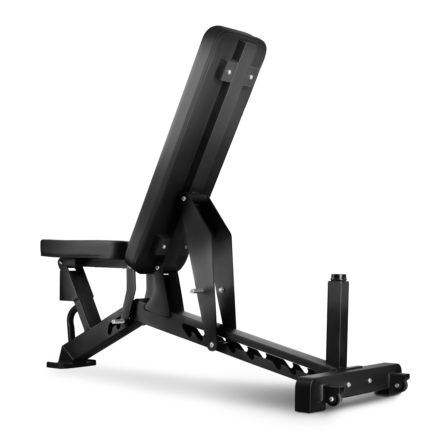 De bank is praktisch voor kleinere ruimtes – transportwieltjes en een handgreep vergemakkelijken het verplaatsen, terwijl antislipvoetjes de bank stevig op zijn plek houden. De semi‑commercial constructie combineert duurzaamheid met een lange levensduur en is geschikt voor zowel de thuisgym als club- of kleinere studio’s.