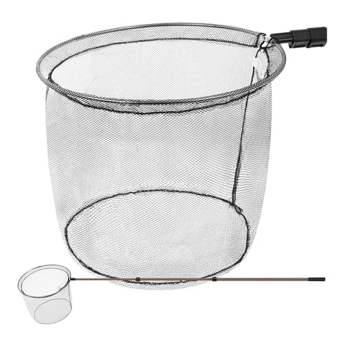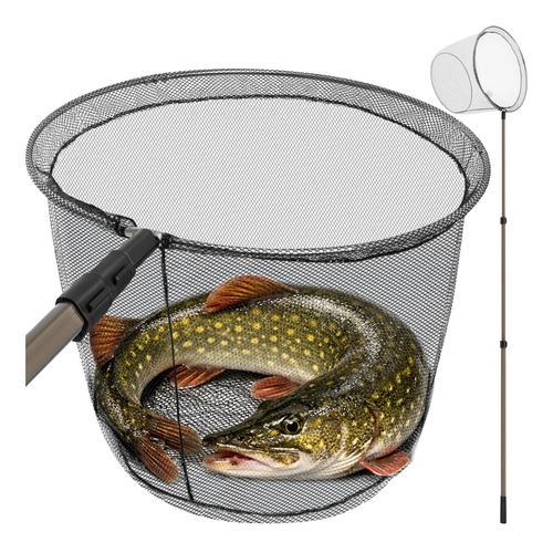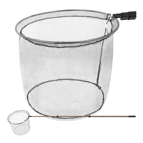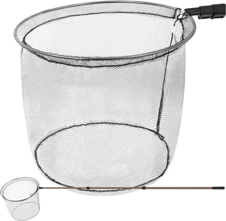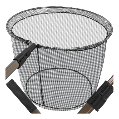 Ronde mand met een diameter van 48 cm en een diepte van 45 cm met fijn polyester net houdt de vangst veilig vast en beschadigt de schubben niet.