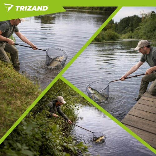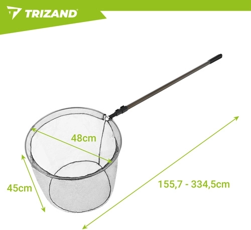 Licht en stevig telescopisch landingsnet van TRIZAND met een maximale lengte van 334,5 cm voor veilig scheppen van de vangst, ook vanaf hogere oevers en steigers. De diepe mand 48 × 45 cm met fijn, visvriendelijk net zorgt voor zekere en zorgzame landing van de vis. De driedelige telescopische constructie, anti-sliphandgreep en duurzame materialen (aluminium, roestvrijstalen ring) garanderen betrouwbaarheid en comfortabel gebruik bij elke sessie.