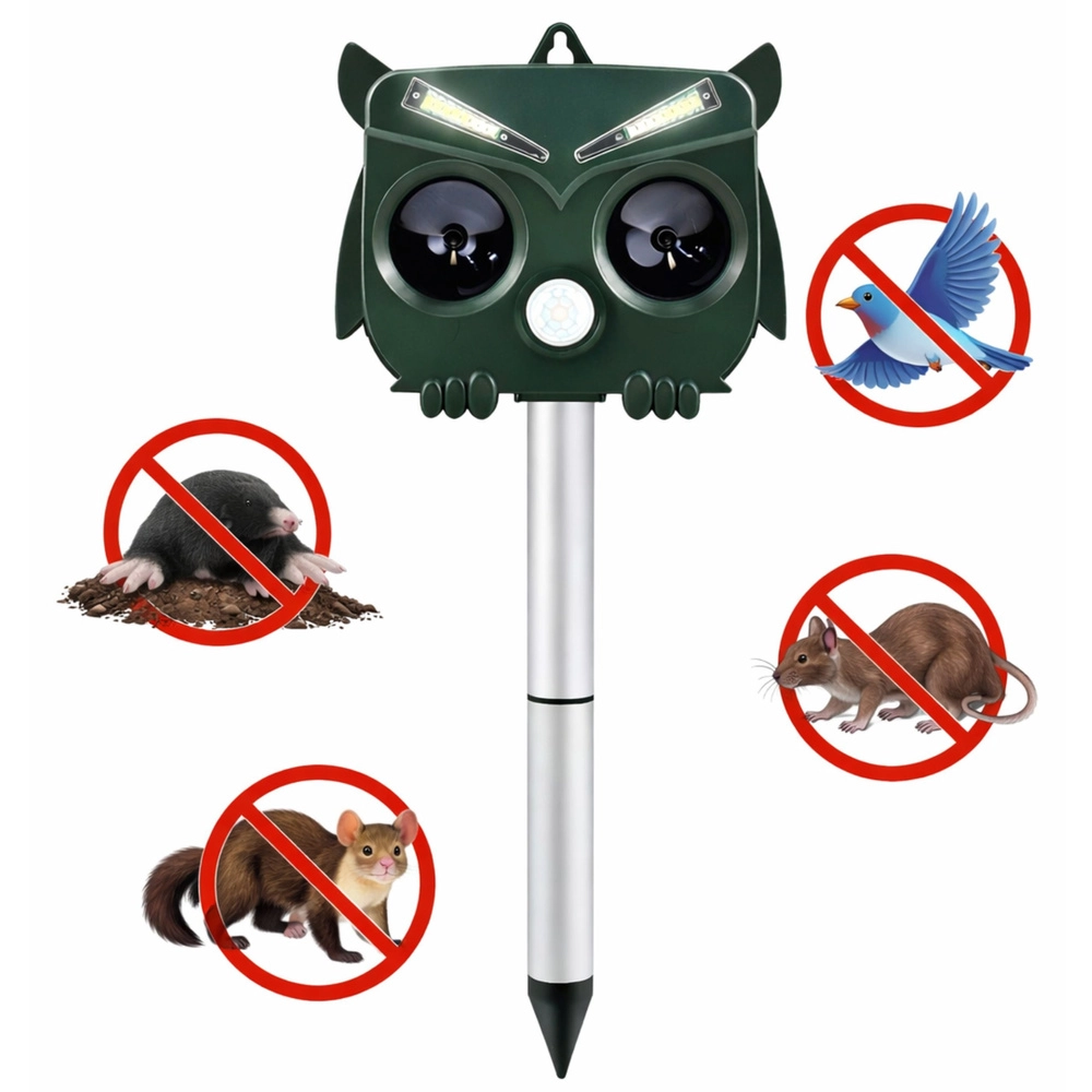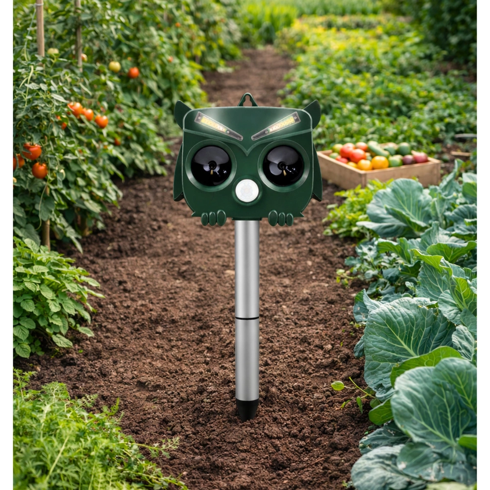 Bescherm je tuin op een milieuvriendelijke, chemievrije manier met de op zonne-energie werkende uil-verjager. Het apparaat met een PIR-bewegingssensor wordt alleen geactiveerd wanneer het een dier detecteert en combineert ultrasoon geluid, geluidssignalen en knipperende LED voor een effectieve maar diervriendelijke afschrikking van katten, vogels, knaagdieren en ander ongedierte. Opladen gebeurt via zonne-energie of via USB, en de montage is eenvoudig met de grondpen of het ophangoog.