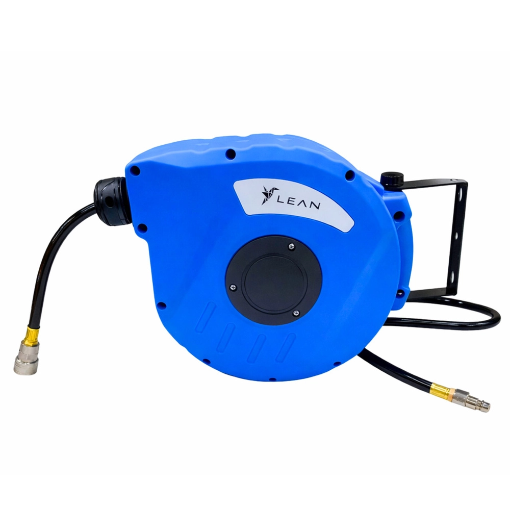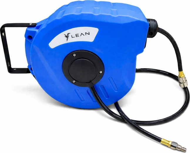 De automatische haspel voor persluchtslangen zorgt voor een nette en georganiseerde werkplek zonder verwarde slangen. De duurzame en flexibele PVC-slang met profiel 8 × 12 mm biedt een betrouwbare doorstroming van lucht en vloeistoffen bij een werkdruk van 8 bar en kan tot 24 bar aan bij overbelasting. Het geïntegreerde automatische mechanisme rolt de slang soepel af en na het werk veilig terug in de gesloten behuizing.