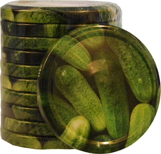 Praktische schroefdeksels Twist 82 met vrolijk komkommerdecor, ideaal voor weck-/inmaakpotten. Ze bieden een betrouwbare schroefsluiting van het type RTS, die zorgt voor veilige bewaring van de inhoud. De verpakking bevat 10 stuks met een diameter van 82 mm.