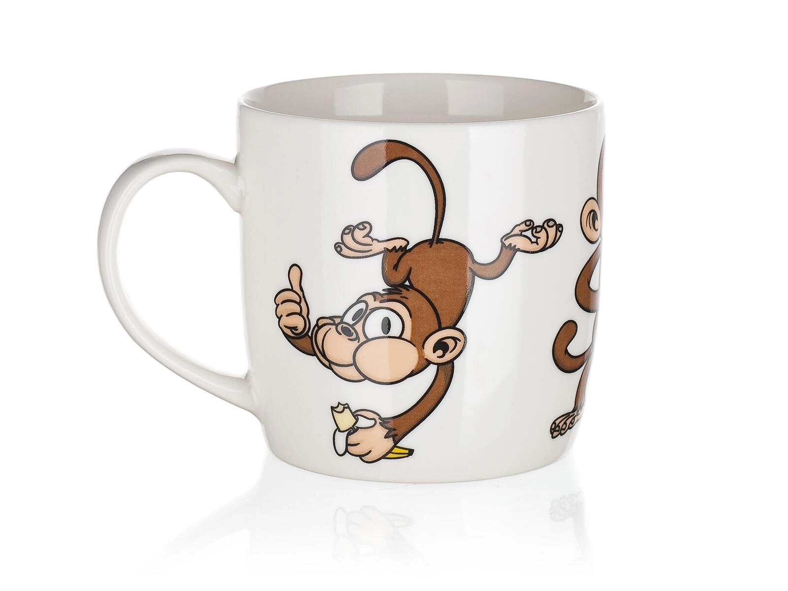 Schattige keramische mok met een inhoud van 320 ml en een speels apenmotief, leuk voor zowel kinderen als volwassenen. Ideaal voor dagelijks gebruik – voor koffie, thee of cacao. Kies uit een mix van vrolijke decoraties, elk met een glanzend glazuur en een comfortabele oor. Geschikt voor warme en koude dranken en perfect als cadeau.