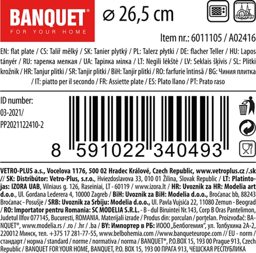 Dankzij het duurzame porselein is het bord stabiel, hygiënisch en gemakkelijk schoon te maken. Ontworpen voor intensief gebruik in huis én in de professionele gastronomie.