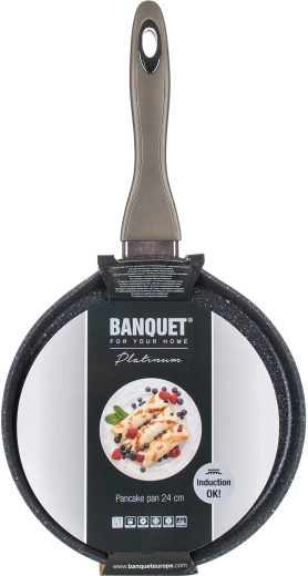 Bereid perfecte pannenkoeken met de METALLIC PLATINUM pan met een diameter van 24 cm. De gegoten, gesmede aluminiumconstructie zorgt voor een hoge thermische geleiding, de pan warmt snel op en houdt de temperatuur lang vast. De duurzame antiaanbaklaag minimaliseert de behoefte aan olie en maakt reinigen eenvoudig.