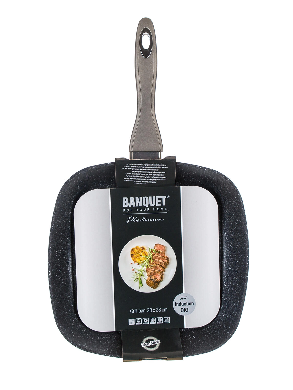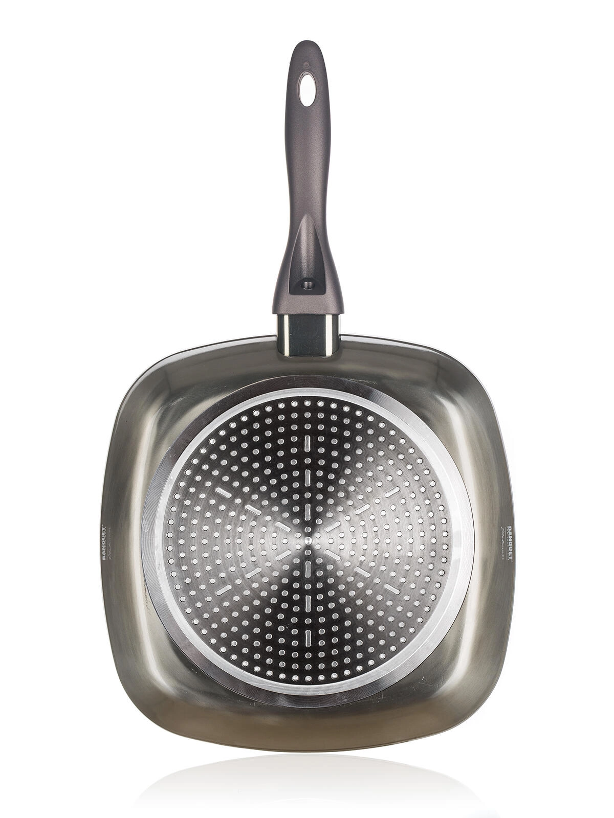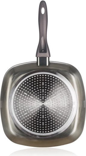 Geniet van sappige steaks, groenten en vis met deze diepe, vierkante pan van 28 × 28 cm. De hoge warmtegeleiding van gegoten aluminium garandeert snelle opwarming en gelijkmatige warmteverdeling, zodat je perfect gaart met een minimum aan olie. De hoogwaardige antiaanbaklaag is zeer hard en krasbestendig, reinigt gemakkelijk en draagt bij aan gezonder koken.