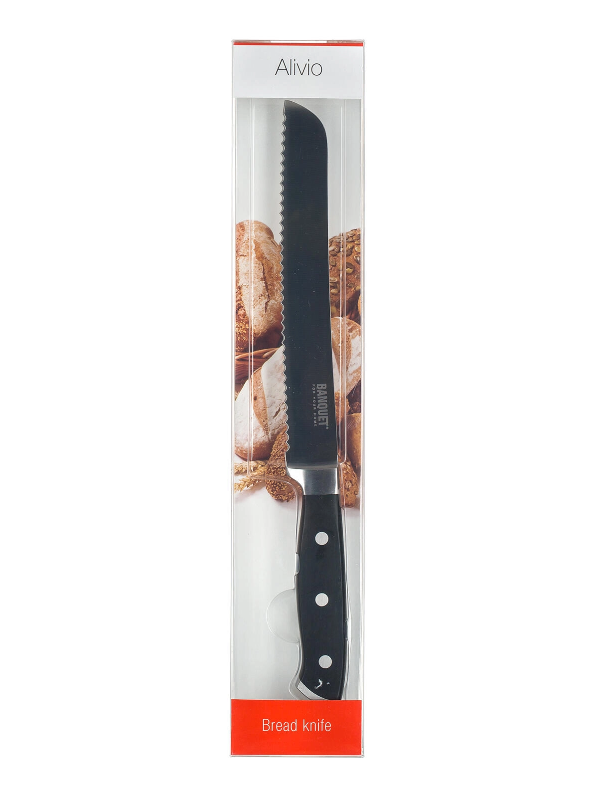 Het ALIVIO-broodmes is ontworpen voor nauwkeurig en comfortabel snijden van alle soorten brood en gebak – van knapperige broden tot zachte toast. Het roestvrijstalen lemmet van 20 cm met een gegolfde (gekartelde) snede gaat moeiteloos door de korst zonder scheuren of onnodige kruimels, terwijl de zachte kruim intact blijft.