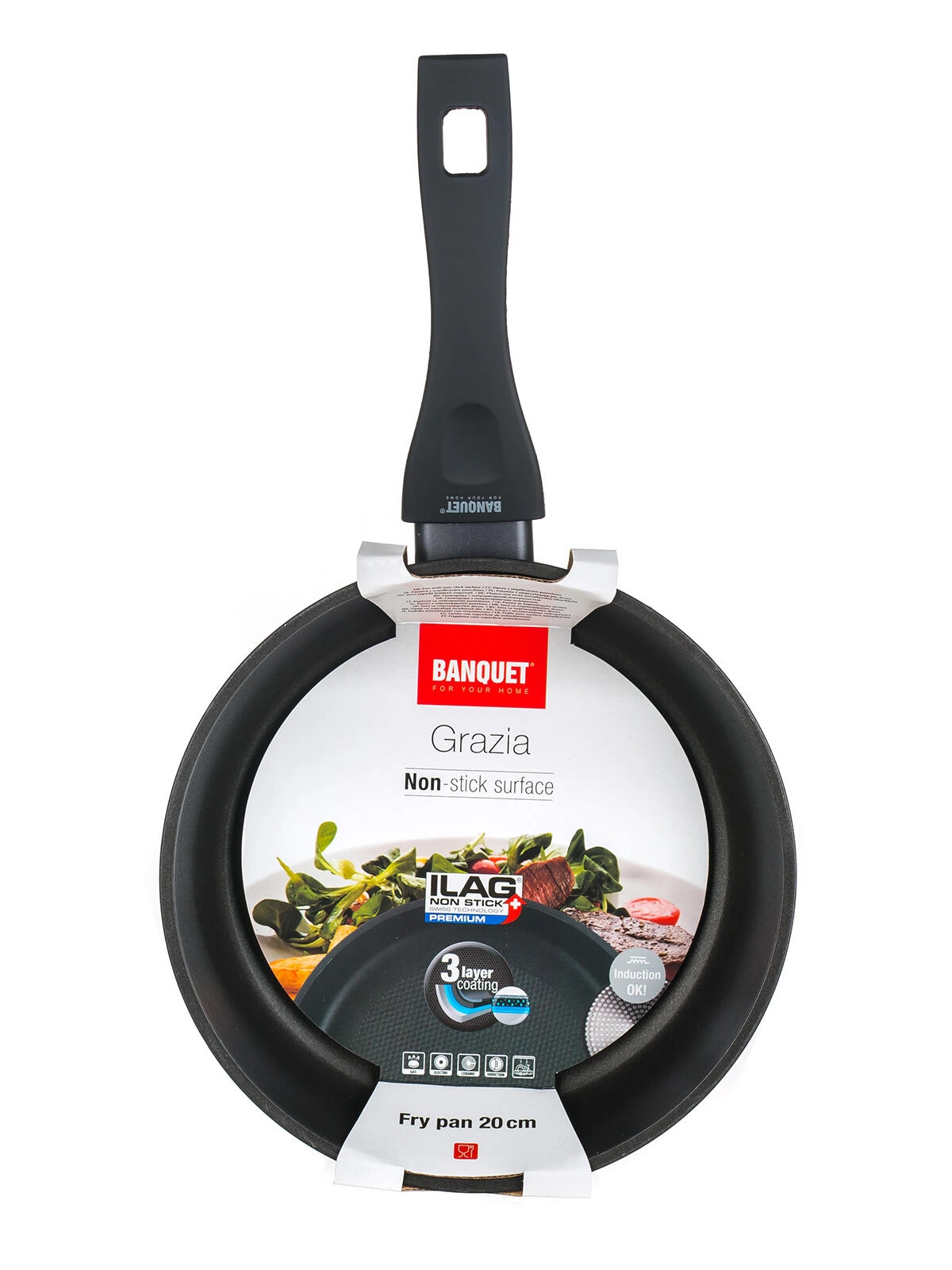 De GRAZIA koekenpan met een diameter van 20 cm is ideaal voor het dagelijks bereiden van eieren, pannenkoeken, groenten of kleinere porties vlees. Dankzij de 3-laagse ILAG PREMIUM anti-aanbaklaag branden ingrediënten niet aan en is de pan gemakkelijk schoon te maken. De gesmede aluminium behuizing zorgt voor een snelle en gelijkmatige warmteverdeling, terwijl de hittebestendige dubbele buitencoating extra duurzaamheid en een elegante matzwarte look biedt.