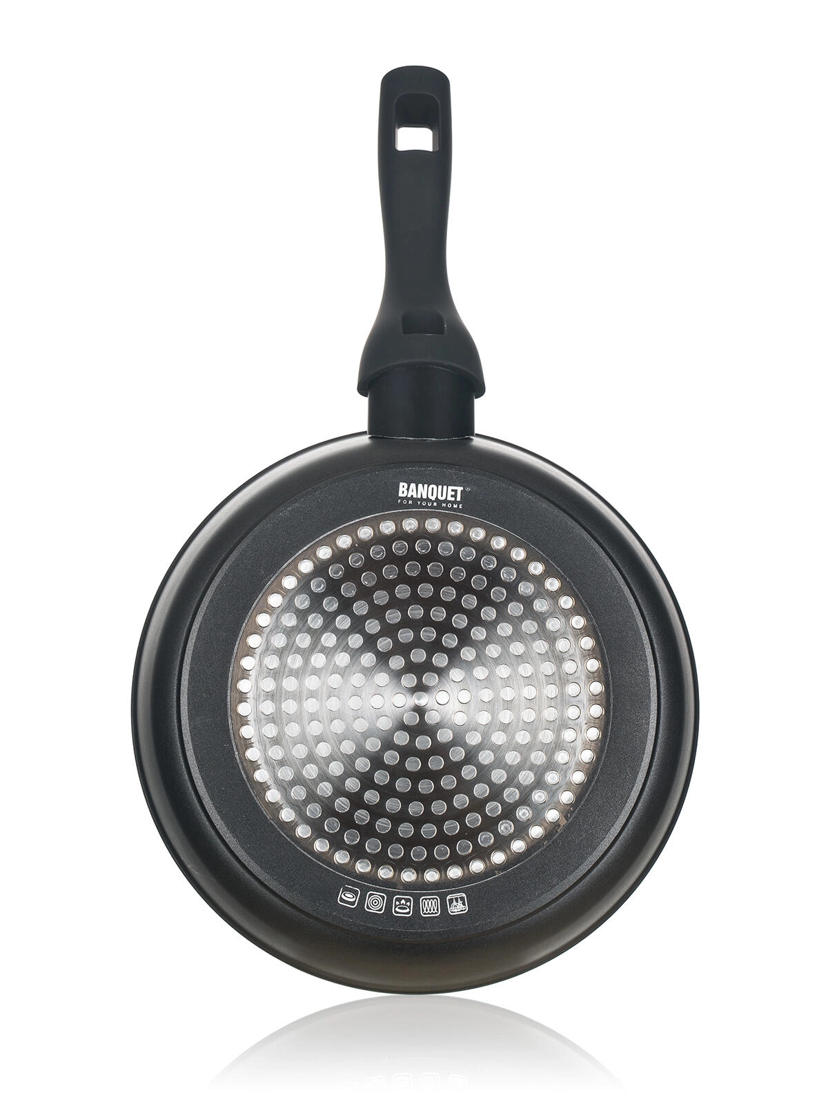 De inductiebodem met gelaserd pictogram maakt gebruik op alle typen kookplaten mogelijk, inclusief inductie. De ergonomische handgreep ligt comfortabel in de hand en verhoogt de veiligheid en controle tijdens het koken en bakken.