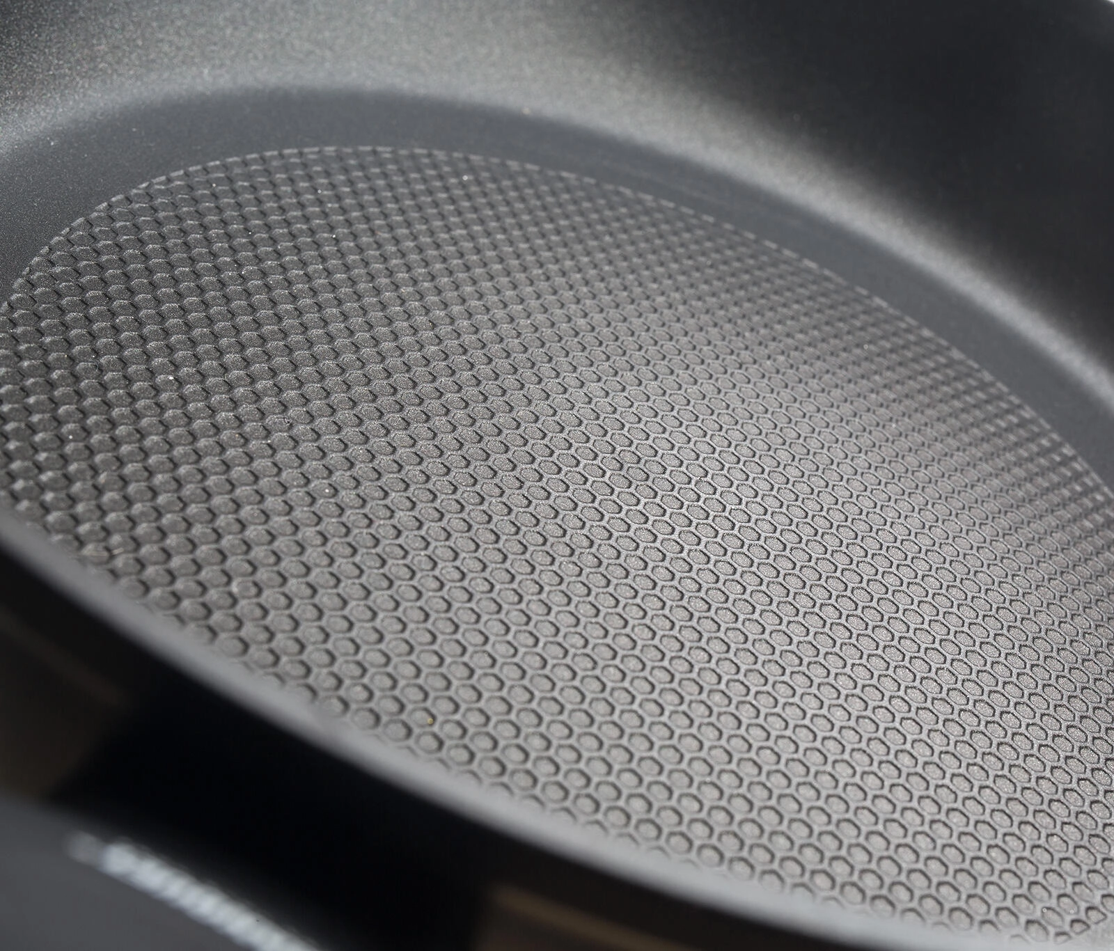 De drielaagse antiaanbaktechnologie zorgt voor een perfecte lossing van voedsel, beperkt aanbakken en maakt schoonmaken na het koken aanzienlijk eenvoudiger.