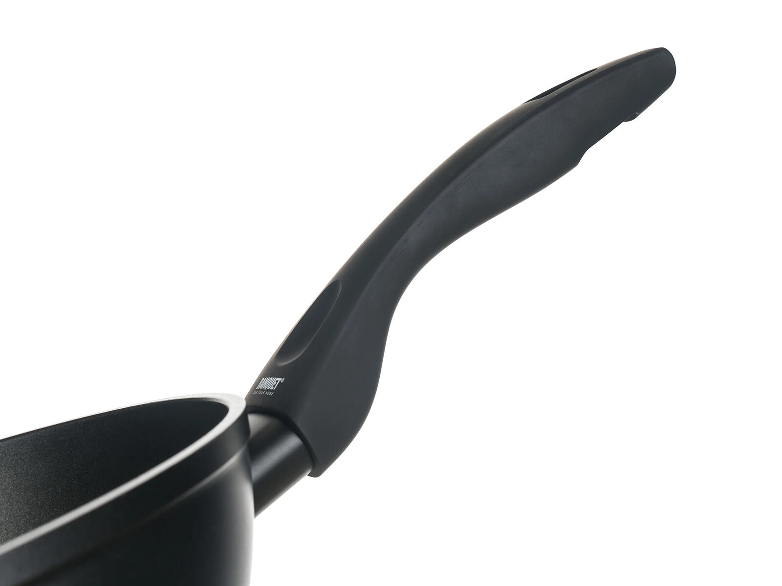 Dankzij de inductiebodem en de duurzame 2-laagse hittebestendige buitencoating is de pan robuust en veelzijdig. De comfortabele, ergonomische handgreep met ophangoog vergemakkelijkt zowel hantering als opbergen.