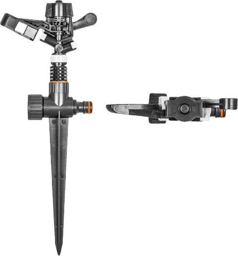 Praktische impuls-sproeier met grondpen WHITE LINE met mogelijkheid tot instelling van waterstraalintensiteit, bereik van dekking en spuitafstand. De duurzame kunststof pen steek je eenvoudig in de grond en dankzij de snelkoppeling sluit je hem razendsnel aan op de slang of koppel je hem door met andere sproeiers. Besproeiingsdiameter tot 17 m zorgt voor een efficiënte dekking, ook van grotere oppervlakken.
