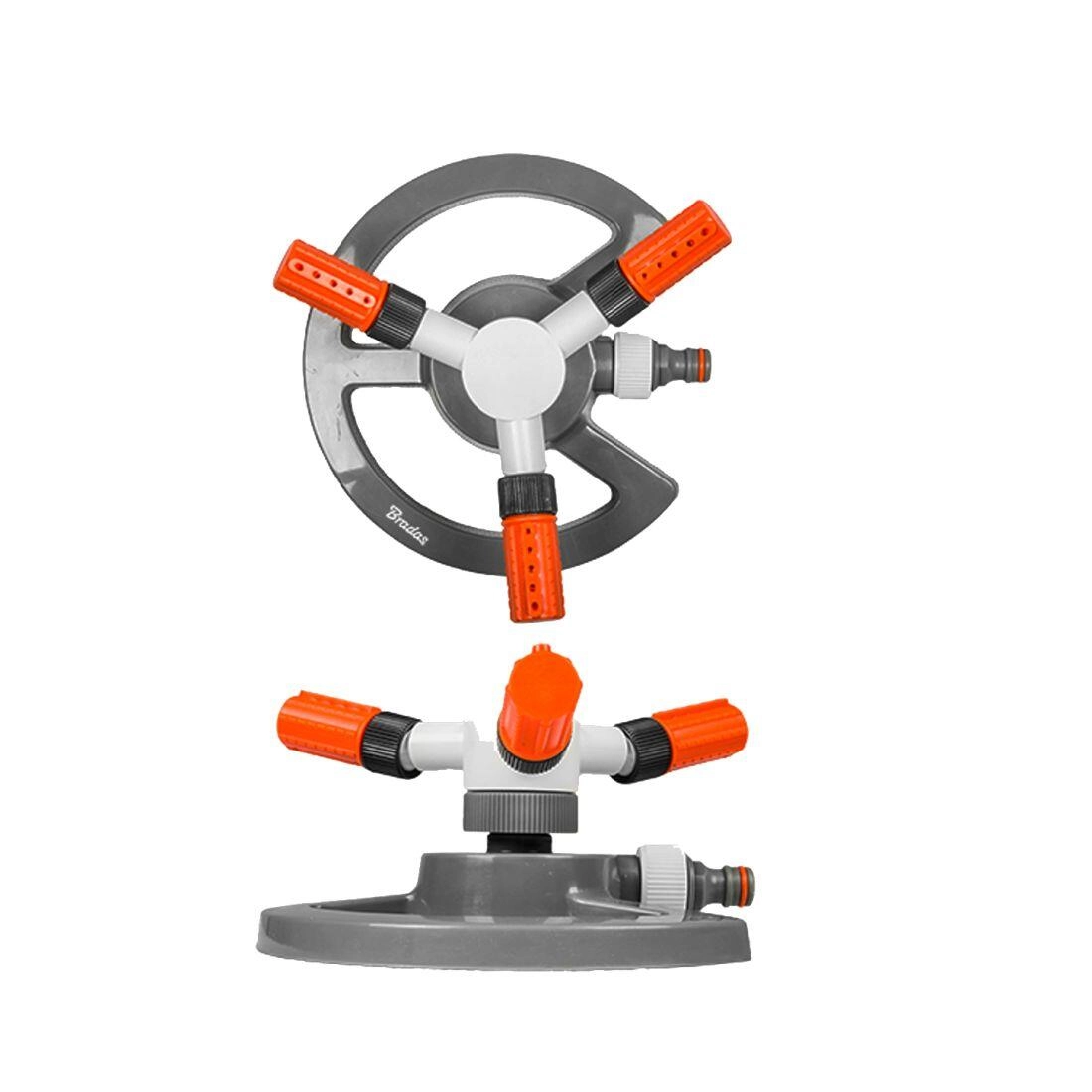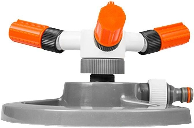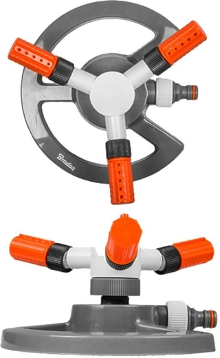 De driekops roterende kop verspreidt water in een cirkel en zorgt voor een constante dekking van gazons en perken zonder overbewatering.