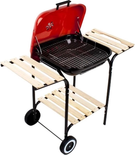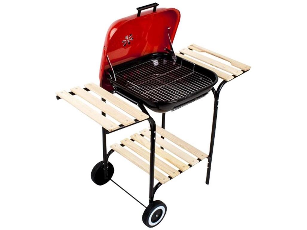 De vuurhaard met een geëmailleerd oppervlak is hittebestendig en eenvoudig te reinigen, terwijl het deksel in rode poederlak de barbecue een stijlvolle look geeft en beschermt tegen het weer. Houten aflegplanken bieden voldoende ruimte voor gereedschap en ingrediënten, en dankzij de transportwielen verplaats je de barbecue eenvoudig naar waar je hem nodig hebt.