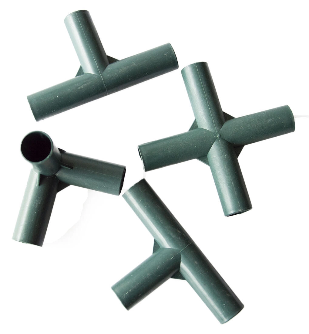 Praktische set vervangende kunststof koppelstukken voor reparatie en versteviging van de constructie van een foliekas. Bevat 24 koppelstukken en 4 pennen met koord voor buizen met een diameter van 16 mm. Ideaal voor snel onderhoud, eenvoudige montage en een langere levensduur van de foliekas.