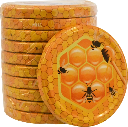 De deksels zijn geschikt voor standaard inmaakpotten met een halsdiameter van 82 mm. Het decor met honingmotief geeft je potten een mooie uitstraling en maakt duidelijke inhoudsmarkering eenvoudiger.