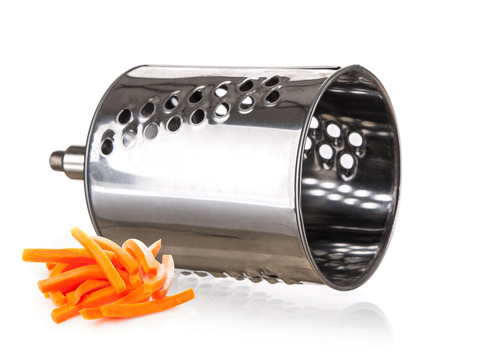 Fijn en grof raspen, plakjes, julienne en een speciale trommel voor noten of chocolade. Bereid ingrediënten precies volgens het recept in slechts enkele minuten.