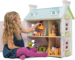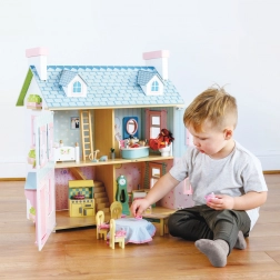 Luxe, handbeschilderd houten poppenhuis Mayberry Manor met drie verdiepingen. De afzonderlijke kamers zijn verschillend gedecoreerd. Bevat een trap die door het midden van het huis loopt. De kamers zijn gescheiden door een tussenwand. Het huis heeft functionerende ramen, luiken en deuren die open kunnen. Het poppenhuis kan aan één zijde worden geopend. De helft van het dak is afneembaar en kan worden gebruikt als voortuin; de onderkant van het dak is passend geïllustreerd. Het huis biedt veel ruimte om te spelen en de creativiteit te ontwikkelen. Geschikt voor poppen tot 15 cm. Meubels zijn niet inbegrepen en kunnen apart worden aangeschaft uit ons assortiment, net als poppen en buitenspeelelementen inclusief speelmat. De inrichting is niet inbegrepen. Le Toy Van poppenhuizen worden met liefde gemaakt voor een leven lang betoverend spel. Ze gebruiken duurzame methoden, ethische productie en maken prachtige houten speelgoed die vandaag en voor toekomstige generaties de verbeelding inspireren en ontwikkelen. Belangrijkste kenmerken: Helpt bij de ontwikkeling van motorische coördinatie, sociale vaardigheden en spraak. Drie verdiepingen en naar eigen creativiteit in te richten met meubels. Stimuleert langdurig fantasierijk spel. Verbetert coördinatie in een speelse omgeving. Ethisch vervaardigd van duurzaam hout. Genderneutraal ontwerp moedigt delen tussen broers en zussen aan. Gedecoreerd met niet-giftige verf en getest volgens de strengste normen. Daisylane-collectie: Een prestigieuze collectie poppenhuizen en accessoires van Le Toy Van. Meer dan 25 jaar geleden ontwierp oprichter Georges zijn allereerste poppenhuis, de hoeksteen van het merk. Ethisch geproduceerd van duurzame materialen: de houten Daisylane-poppenhuizen zijn uniek en laten de kinderlijke verbeelding de vrije loop. Een familie-erfstuk, een echte investering in speelplezier.