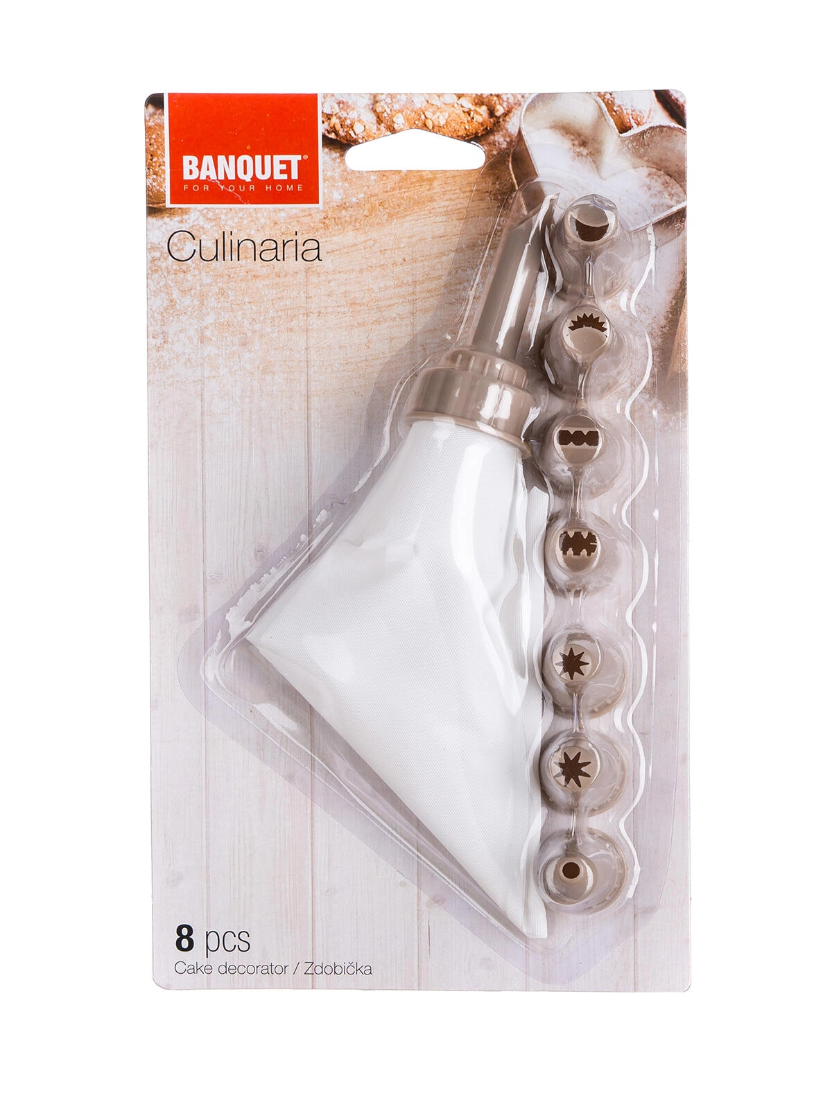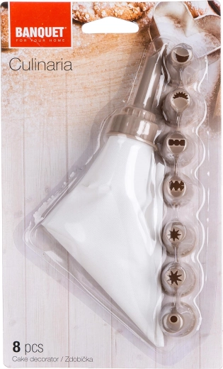 Ontdek het plezier van decoreren met de veelzijdige CULINARIA decoratiezak, die dankzij 8 verschillende spuitmonden elegante lijnen, sterretjes, bloemen en pareltjes maakt. Ideaal voor crèmes, slagroom of vullingen – zo werk je eenvoudig zowel de look als de smaak van je desserts perfect af.