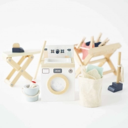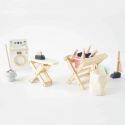 De wasruimte-meubelset biedt kinderen realistisch én creatief spel. De hoogwaardige afwerking met duurzame materialen en oog voor detail garandeert een lange levensduur en een prachtige uitstraling in elk poppenhuis. Dankzij accessoires zoals de wasmachine, het droogrek en het strijkijzer oefenen kinderen fijne motoriek en coördinatie en prikkelen ze hun fantasie.