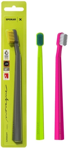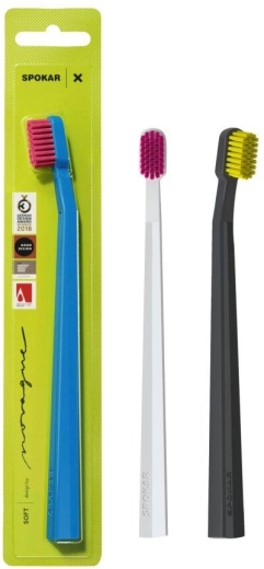 Ontdek zachte en doeltreffende mondverzorging met de Spokar X Supersoft tandenborstel. De premiumlijn, ontwikkeld volgens aanbevelingen van tandartsen, biedt een zeer dicht bezette borstelkop met zachte, afgeronde filamenten die plaque effectief verwijderen en uitzonderlijk mild zijn voor het tandvlees. Dankzij de ergonomische vorm zorgt hij voor een comfortabele grip en gemakkelijke hantering voor een perfect schoon gevoel, elke dag.