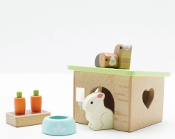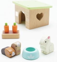 Stimuleer kinderfantasie en zorgzaamheid voor dieren met de betoverende set met konijntje en cavia’s. De set bevat alles voor de dagelijkse verzorging – van een knus hokje tot een bakje en favoriete worteltjes. Kinderen oefenen fijne motoriek, communicatie en sociale vaardigheden.