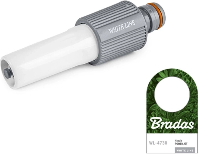 De universele stroommondstuk Power Jet White Line is de ideale aanvulling voor elke tuinslang. Biedt een volledig instelbare sproeikop van een geconcentreerde straal tot een fijne nevel, hoger debiet dankzij grotere diameter en comfortabele bediening dankzij goed gevormde kunststof onderdelen. Perfect voor tuin en rondom het huis en verkrijgbaar in wit‑grijs.