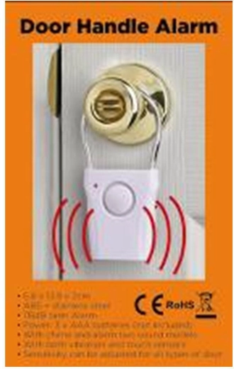 Praktische deuralarm voor snelle beveiliging van je huis. Hang hem eenvoudig aan de deurklink en dankzij tril- en aanraaksensoren herkent hij betrouwbaar de beweging van de deur en activeert een luid alarm tot 115 dB. Biedt eenvoudige installatie, twee geluidsmodi en instelbare gevoeligheid voor verschillende deurtypen.
