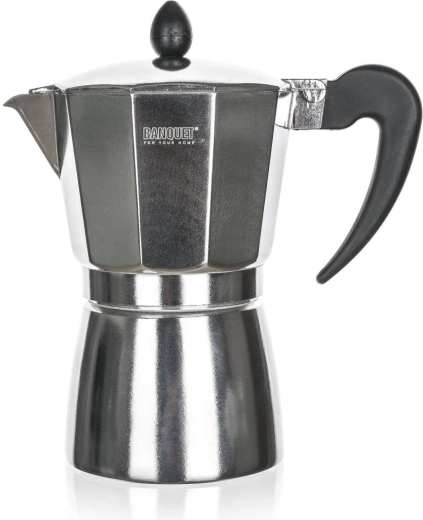 Traditionele mokkapot voor thuisbereiding van sterke en aromatische koffie. De aluminium behuizing geleidt warmte snel en krijgt na verloop van tijd een patina voor een vollere smaak. Geschikt voor gas-, elektrische en keramische kookplaten en voorzien van een veiligheidsventiel.