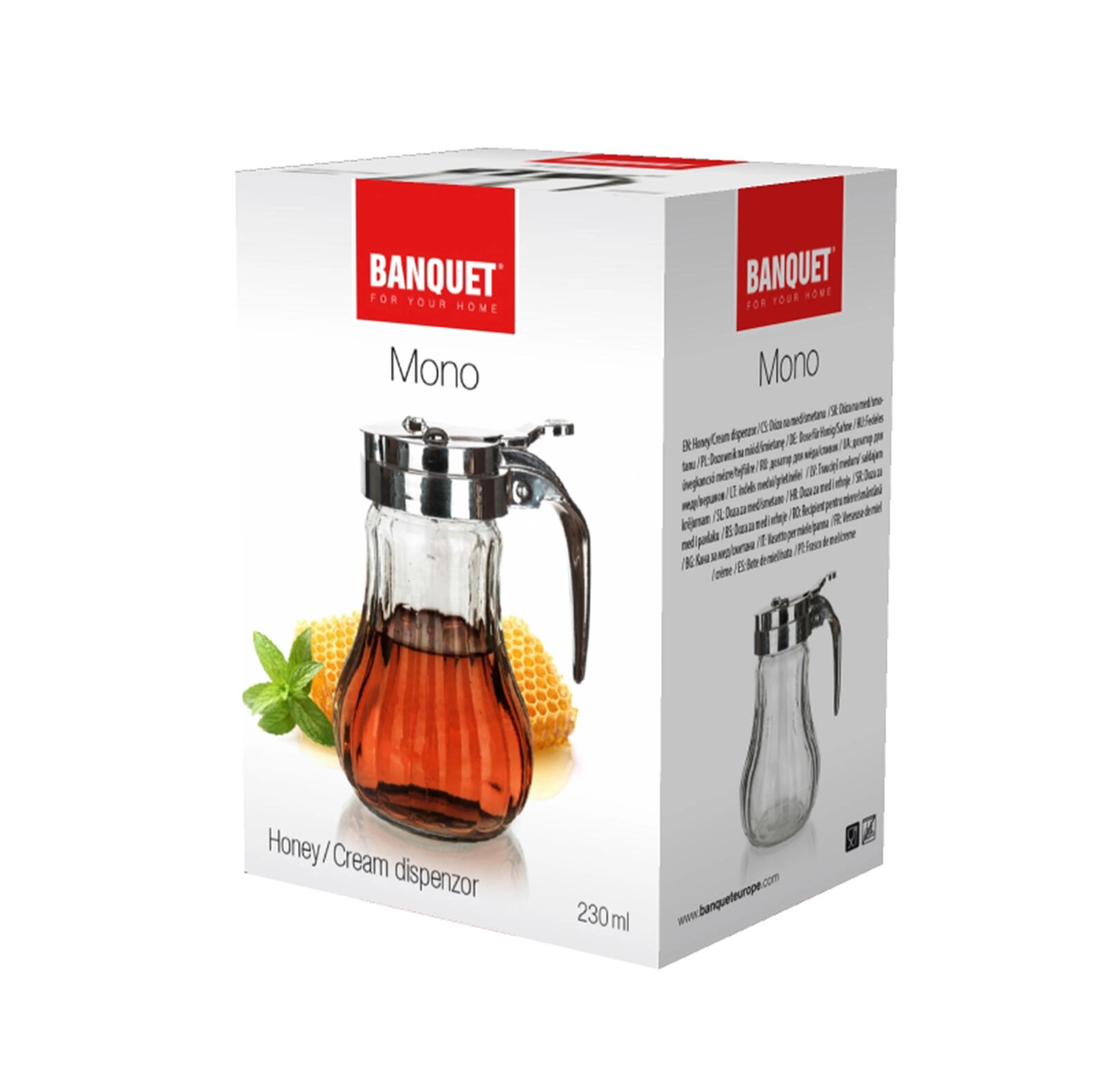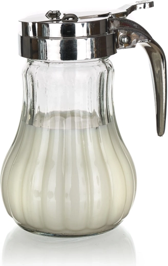 Dankzij de siliconen afdichting is de inhoud beschermd tegen ongewenst lekken en blijft alles langer vers. De stijlvolle combinatie van glas en roestvrij staal past in zowel moderne als traditionele keukens – perfect voor honing, room, melk en ahornsiroop.