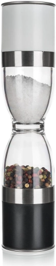 Ontdek het gemak van 2-in-1: één tool voor het malen van zowel zout als peper aan elke kant. Transparante kamers tonen direct de inhoud en hoeveelheid, zodat u precies weet wanneer u moet bijvullen. De RVS-look past perfect in een moderne keuken en het keramische mechanisme zorgt voor egaal en duurzaam malen.